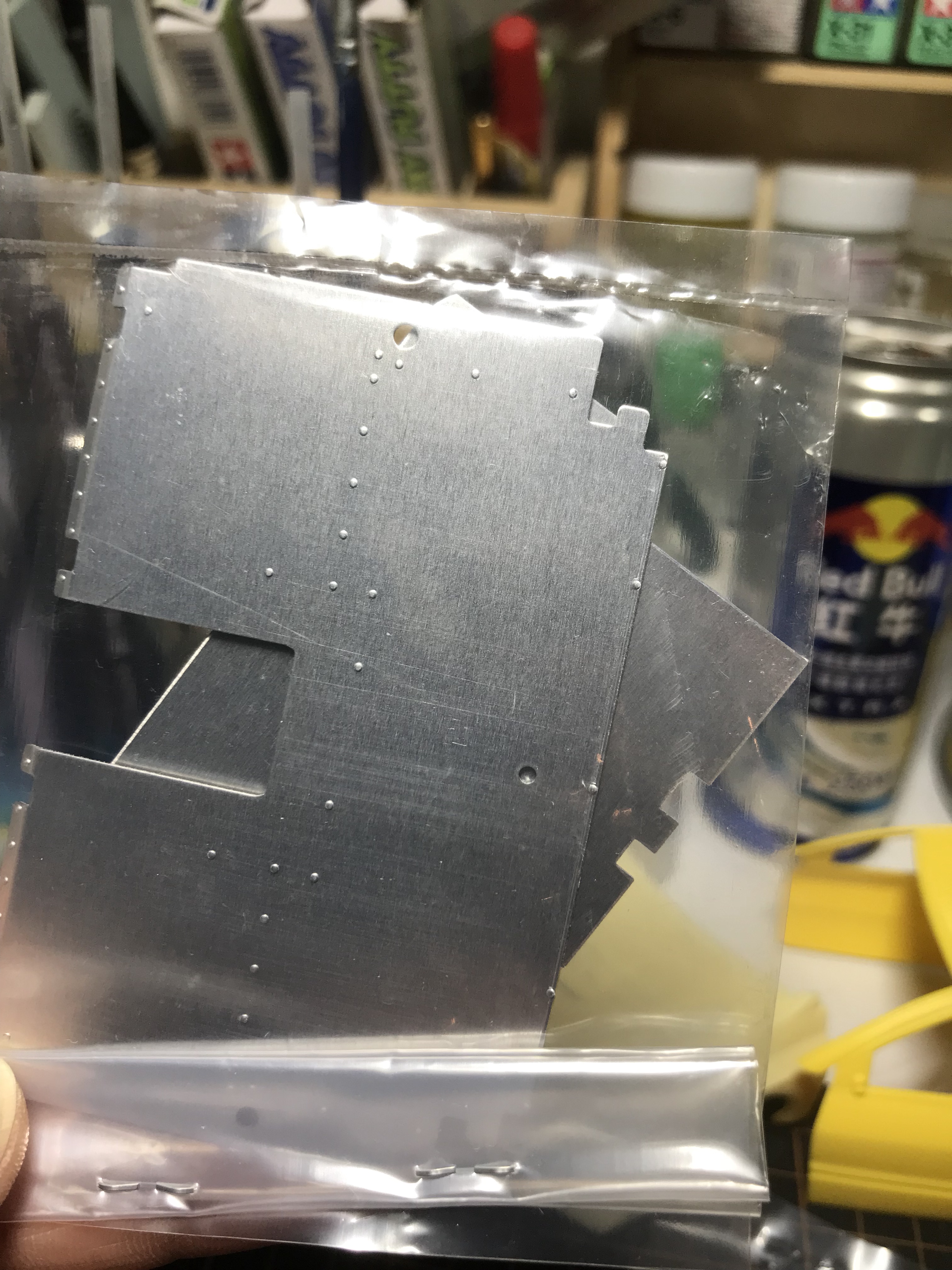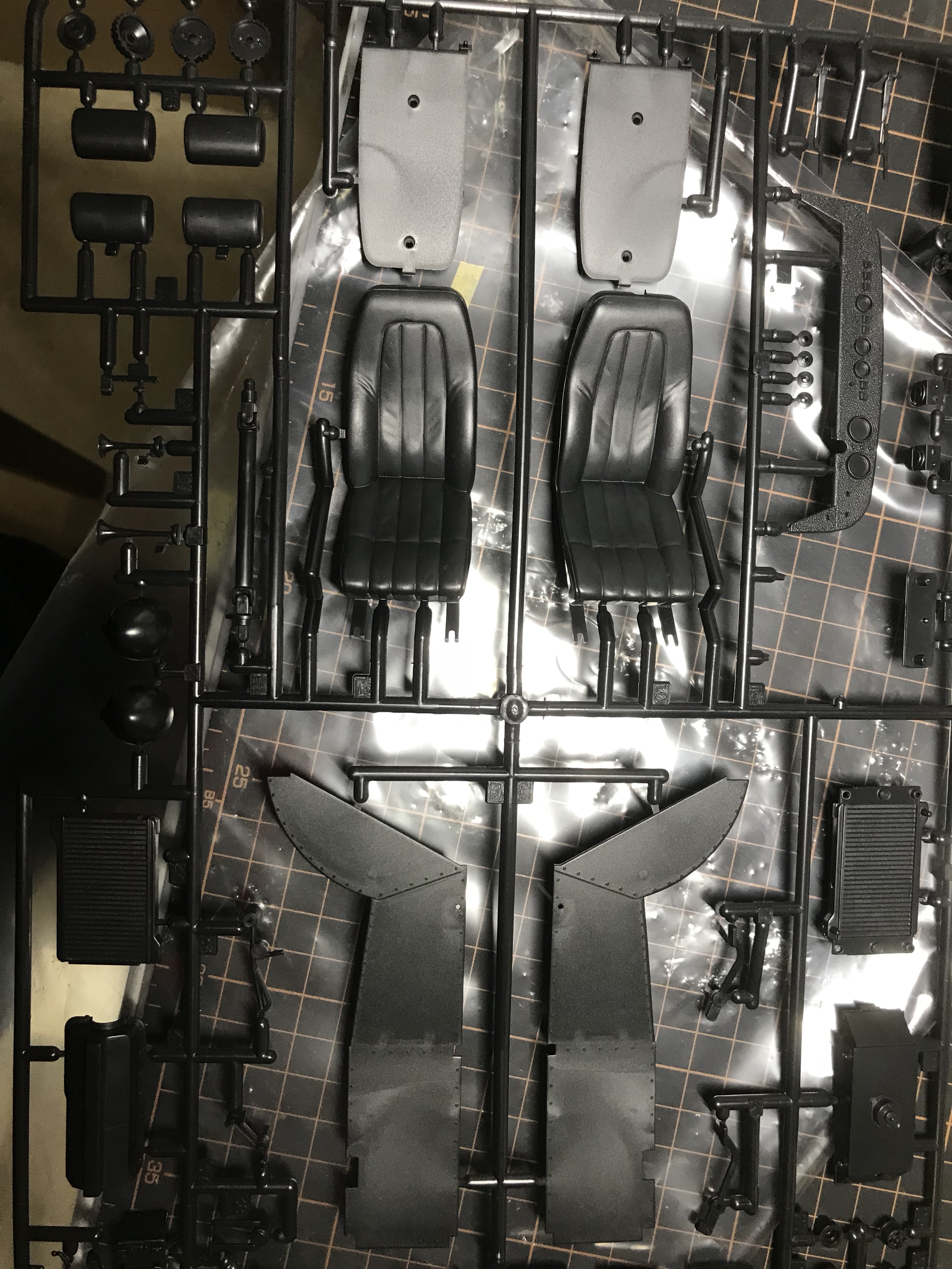 附送了座椅皮革贴纸这个没玩过不知道制作起来难不难。两袋螺丝看着头皮发麻 挡风玻璃是蓝色的 还有网纹的金属线缆。完毕