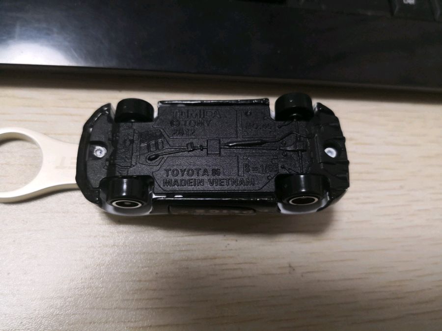 与以往的多美卡不同的地方(疑点):内包装有胶带贴,车轮金属轴偏长,车底前铆钉,车底印字(tomica字样)