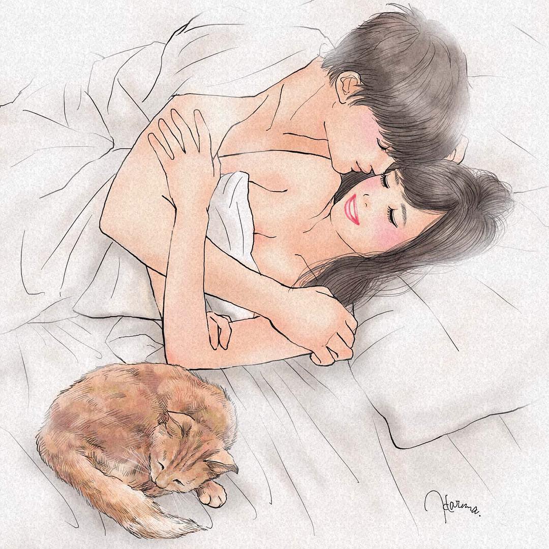 女的睡着了 男的偷偷把猫日了
