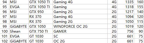 3、价格相同并且排行榜分数相同的显卡跑分也相同,可以互相替换。