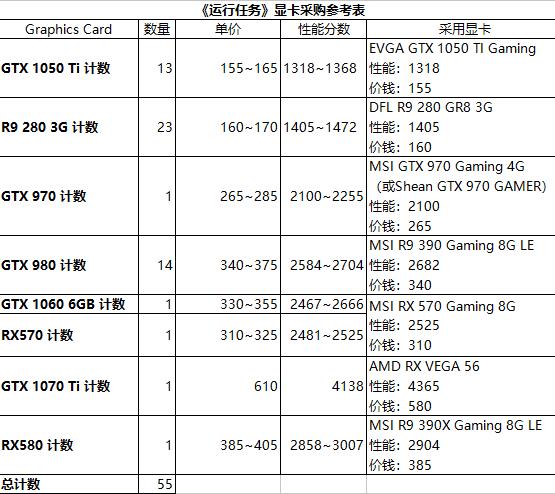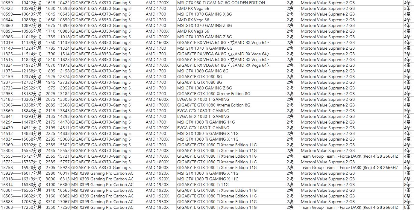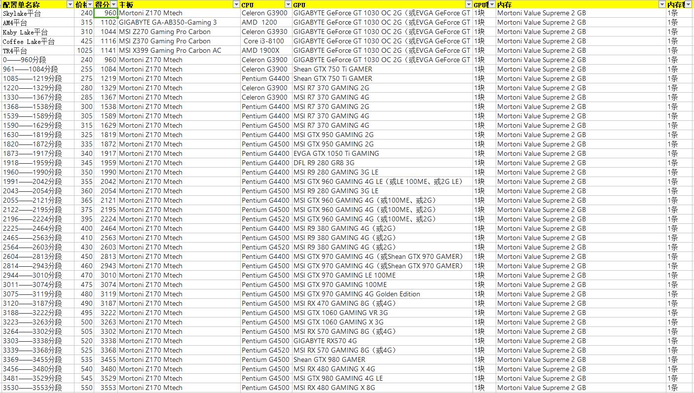 按照任务的要求分数,找到列表内对应的分段,然后无脑配置装机即可。