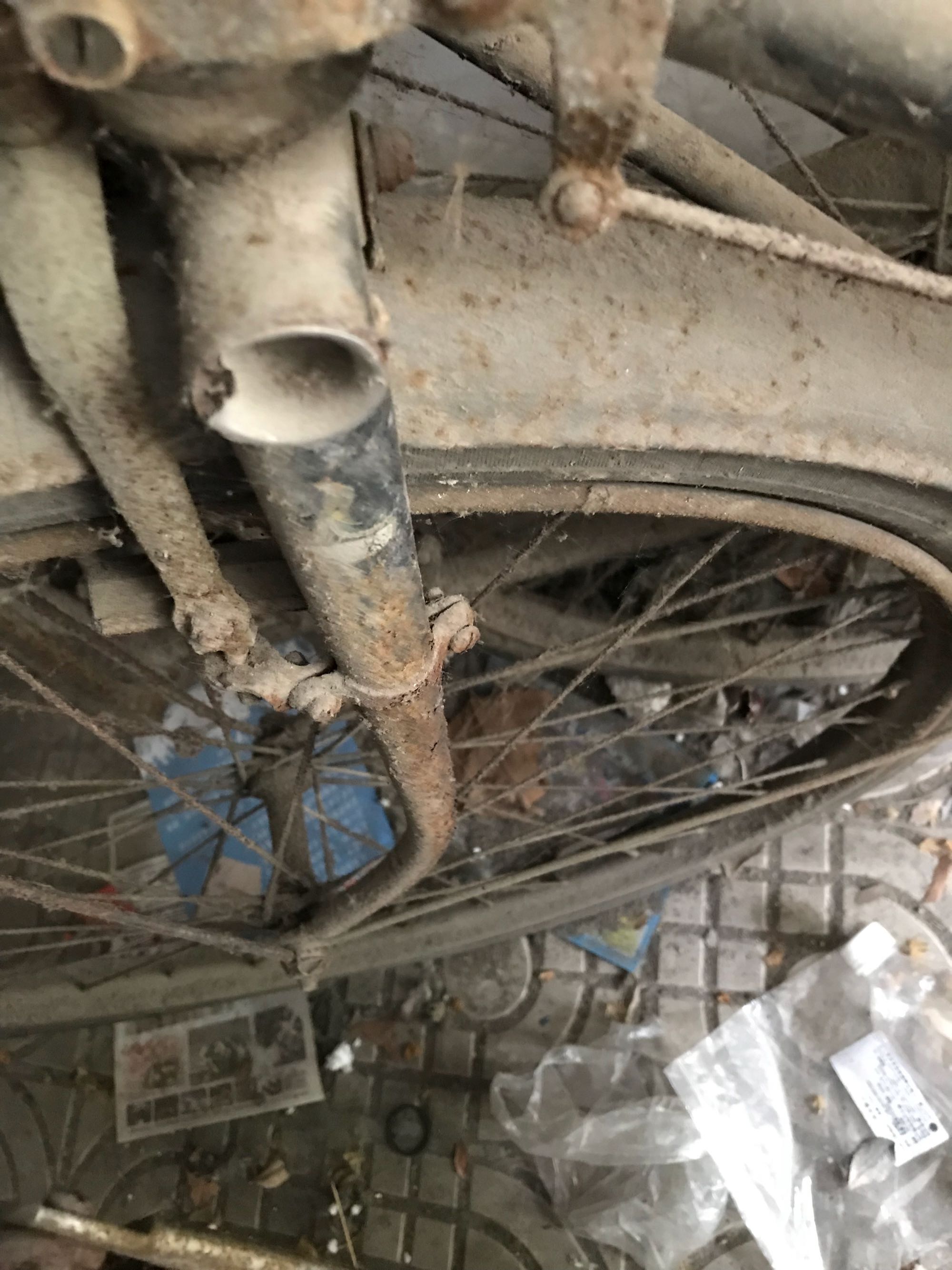 又发现一辆,似乎车架还行,前叉和前车圈锈得狠了点,另,请问前