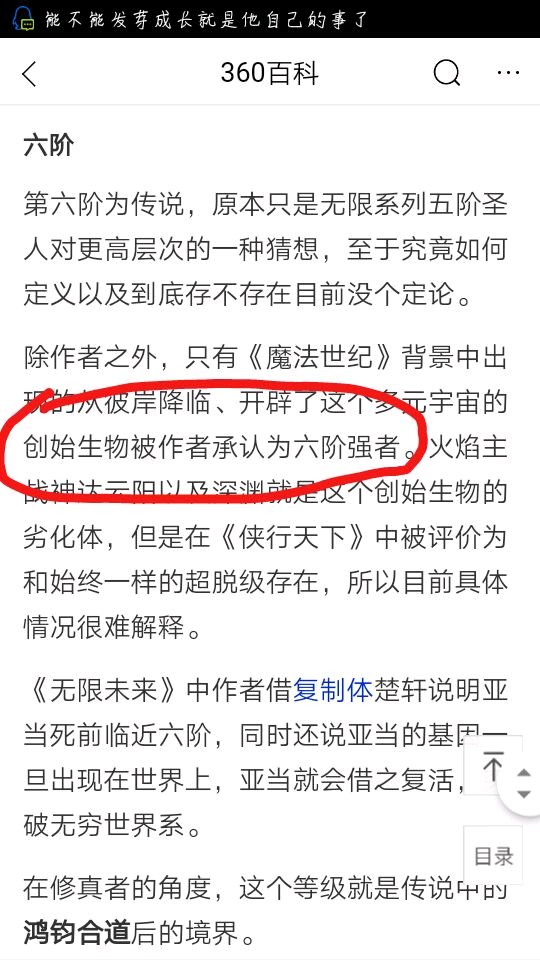 然后群里的读者各种说6阶的,我就说不存在真正的6阶,然后他们说有,其中一个还截图了百科如下图,我没看过魔法世界不知道是不是存在真6阶,而且魔法位面的跟无限系列的力量体系是不是一样