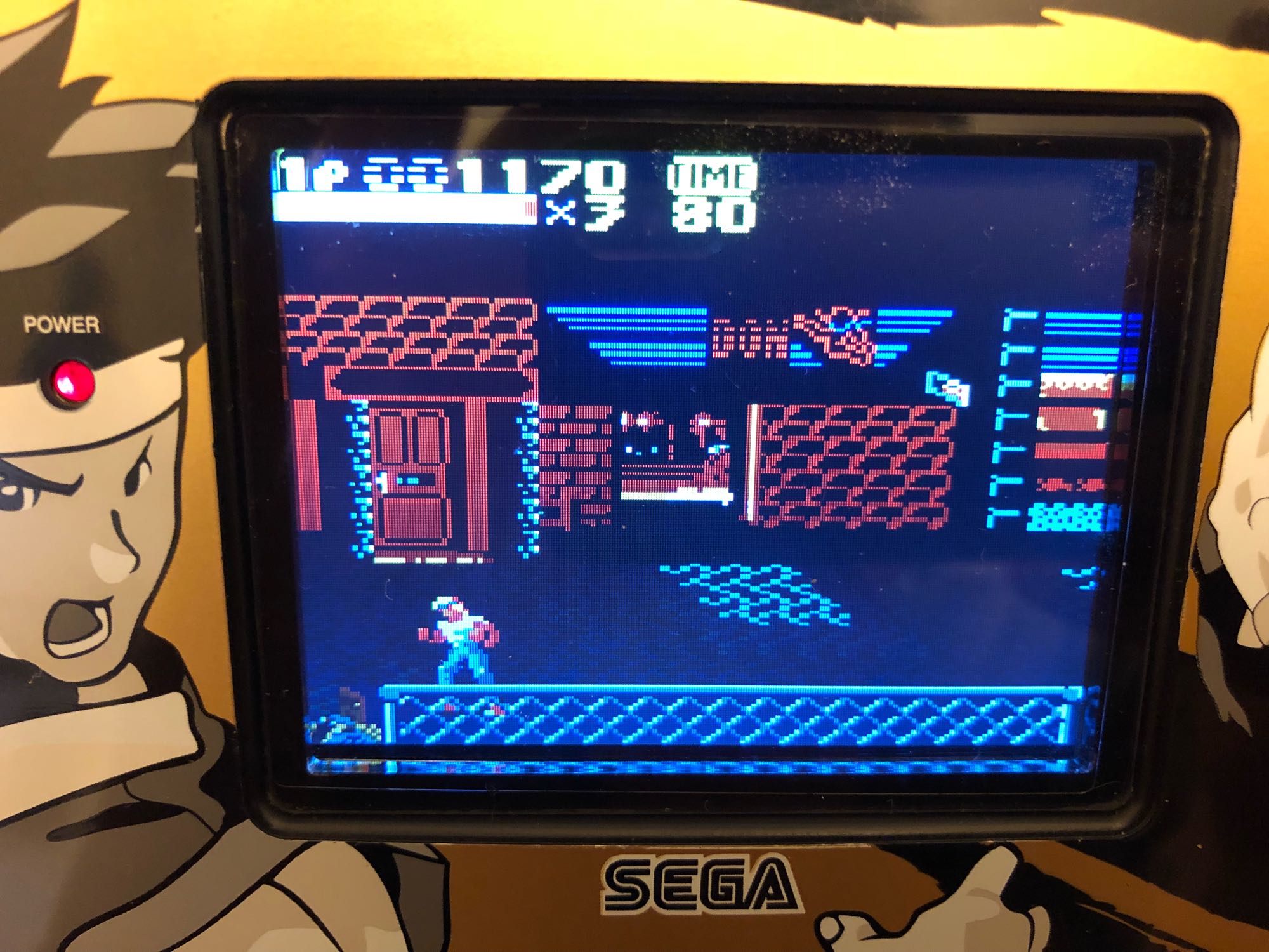 已改LCD的game gear,续航力大概五小时,改好感觉对电压要求更高,很会挑电池,使用的是wii mod LCD、全屏幕游戏,start+1号键+2号键可以切换扫描线模式,改造费用大概1500 rmb。