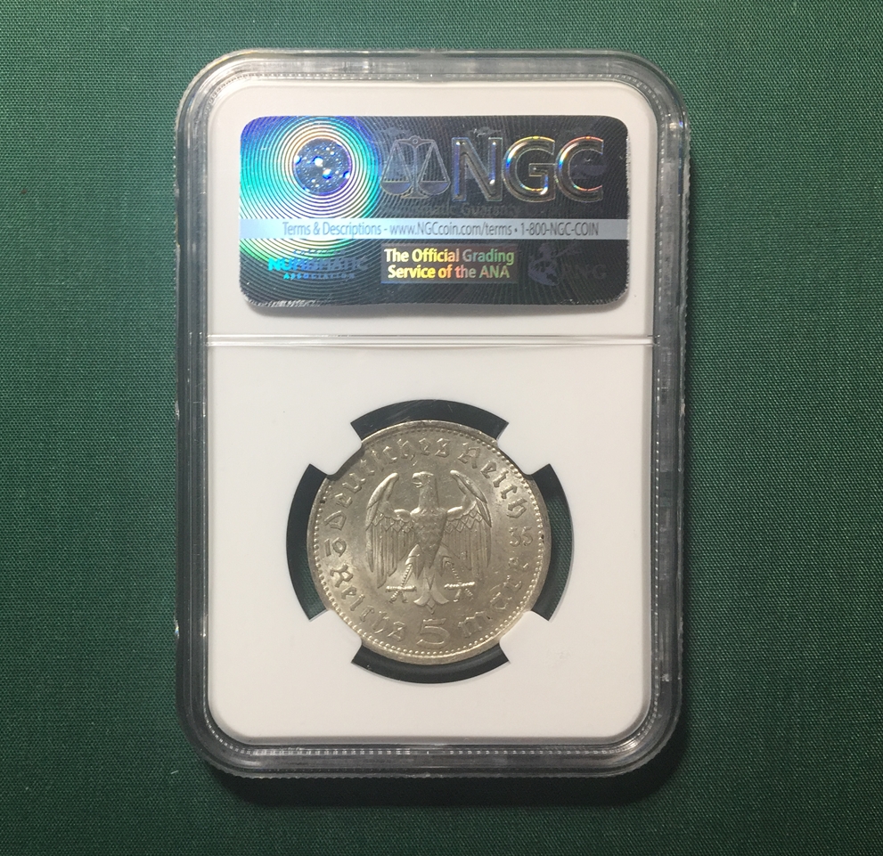 NGC盒子,德国兴登堡5马克,AU58分。