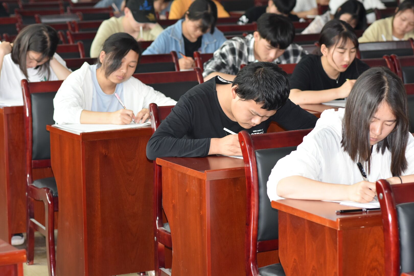 为了全面的检测学生的的知识水平和学习情况,我校本学期期中考试于今日拉开序幕。为做好期中考试工作,各科室、各班级高度重视,积极落实学校领导有关考试的要求,班主任在考前对学生进行了诚信考试教育,要求学生遵守考场规则和纪律。在学校领导的高度重视下,教务处的精心组织下,我校三校生高考班实行单人单桌混排交叉考试,秩序井然。