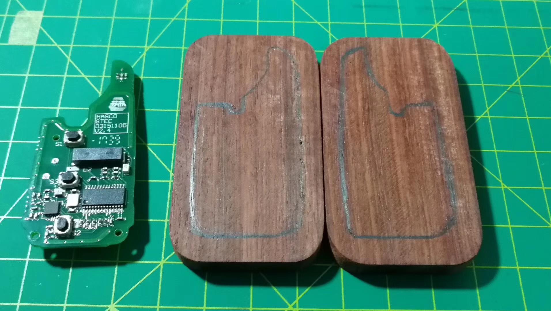 原车钥匙不要我多说了吧,丑!重!厚!机械钥匙几乎用到不到,按键几乎用到不到,某马的APP可以开锁上锁,几个月了放到口袋里基本没拿出来过,因为只要感应就可以了,但是坠再口袋里又鼓又重,网上卖的都是全包的,本身就大还要再包一层,怎么想的…………。无意总看到一家做木质钥匙壳的,不要原壳只要芯片,但是要250左右,感觉木也不是什么好木,抠门气上来舍不得,但给了我方向,洒家自己做!!