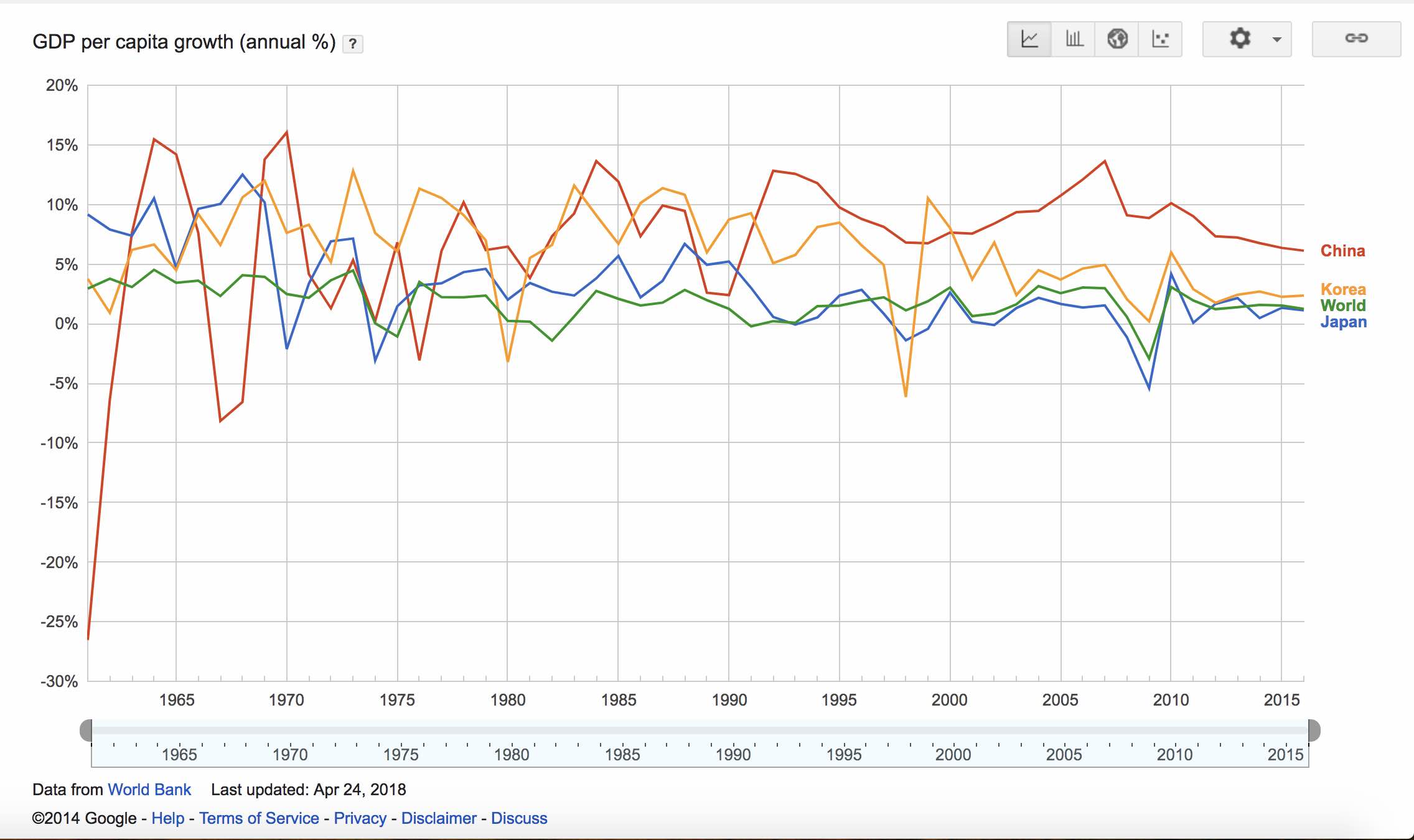 韩国从上世纪60年代开始高速发展,上世纪末成为发达国家。所以现阶段用一个新兴国家和一个发达国家比增速也没有意义。