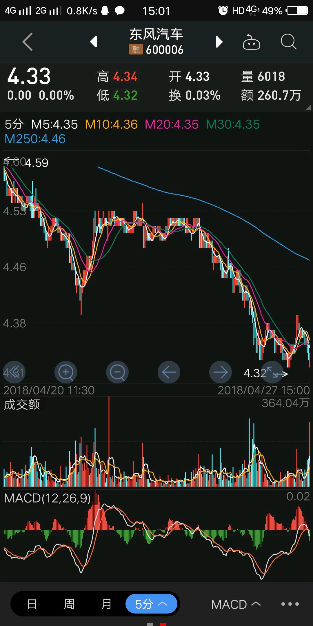 当下正在进行最后一个30中枢震荡底部区域,从5分钟视角来看,回抽还没有走完确认结束,如果不能站到4.20元以上,形成最后一个三十分三卖,事后观察能否形成二买,如果能有效站上4.20元,按30分中枢震荡操作。