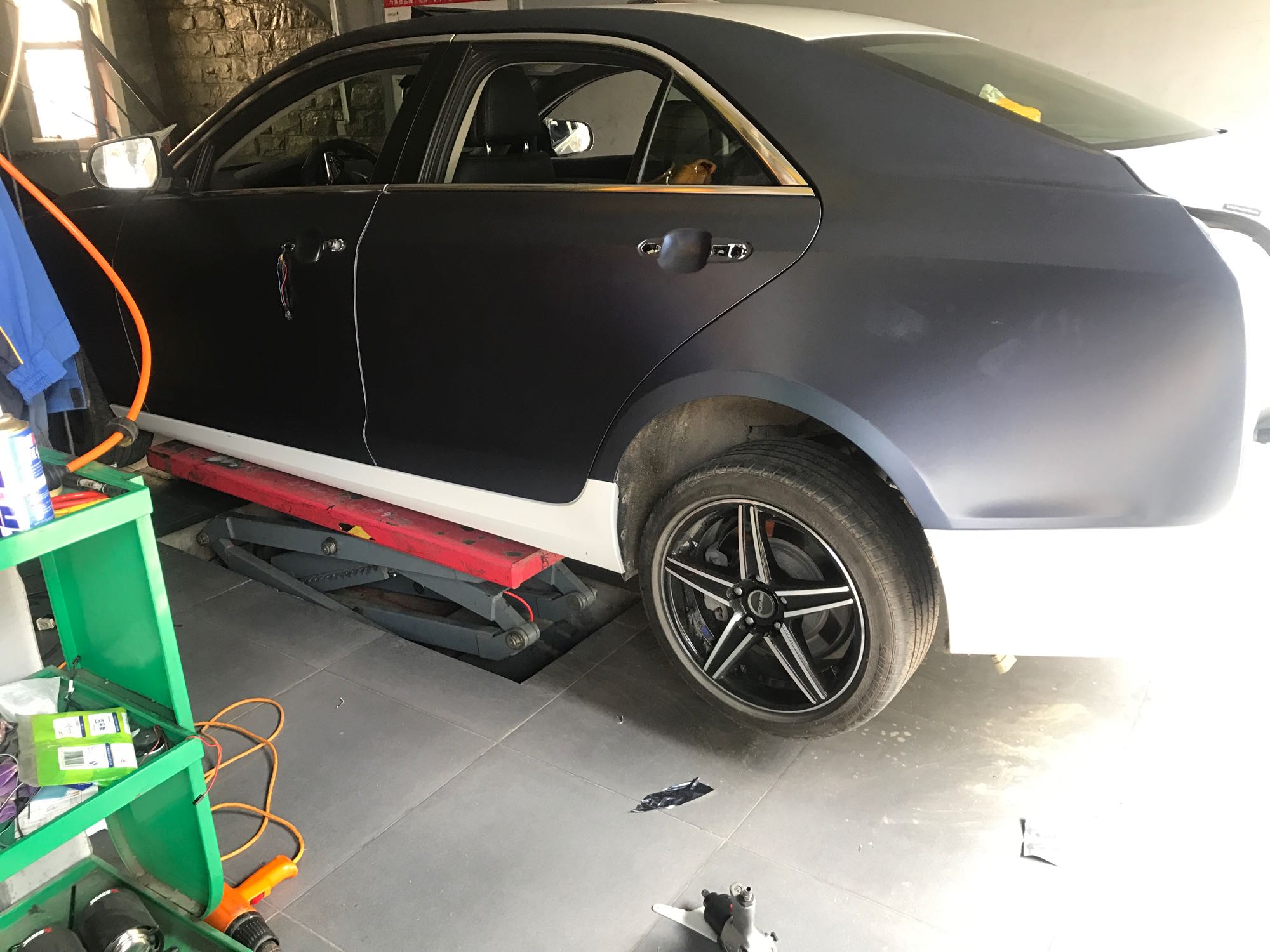 全车贴膜,2017年的车,拿着酒精布一点点擦,划伤的地方还要用砂纸磨平