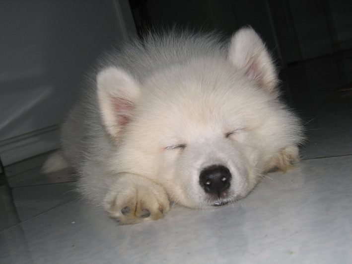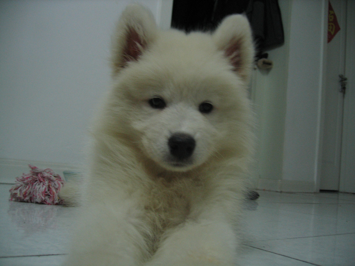 好了照片发完了,最后再上几张TINA刚到我身边的照片,那时宝贝2个多月了,体重才7斤,瘦瘦小小的,现在已经变成了一只威风凛凛的大萨萨勒,所以觉得宝贝瘦小的爸爸妈妈不要着急哦,精心喂养,宝贝很快会长大的,呵呵。