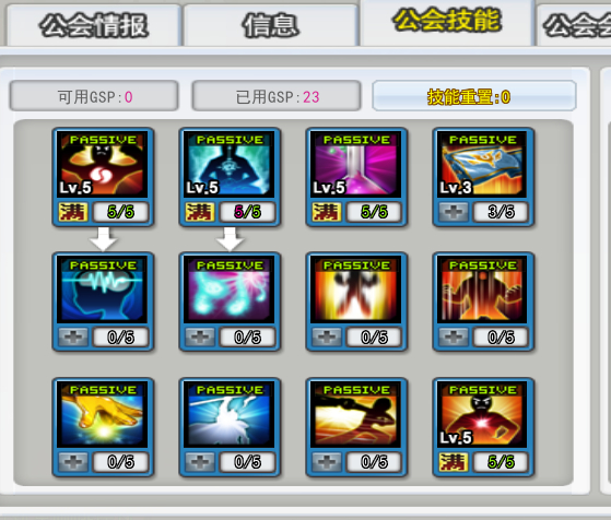 公会技能:[PVE:经验×5 药物×5][PVP:倒地回复×5 攻被暴击×5 被击回血×5]每日×2小时(或以上)的经验buff,特殊活动开24H经验buff。
