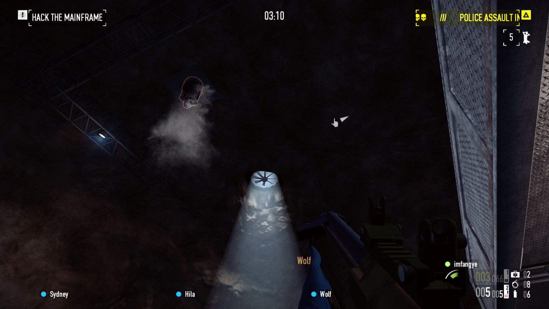 出去后左前方和右前方都会刷一个炮塔,必须打掉(建议带榴弹)。打掉之后等Bain开直升机来,把包都扔直升机上就能走了