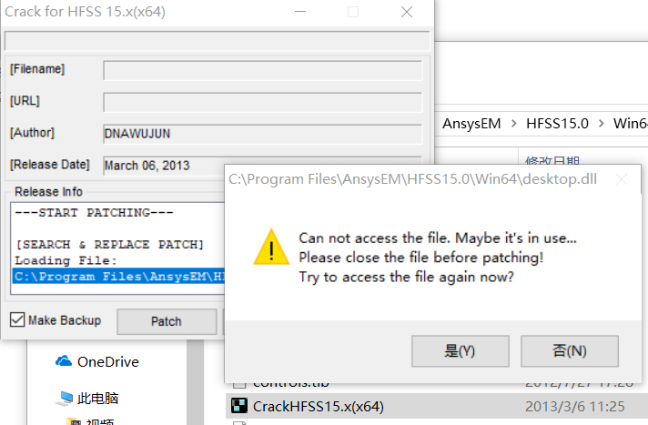 右键用管理员权限运行这个软件,打补丁就能成功了