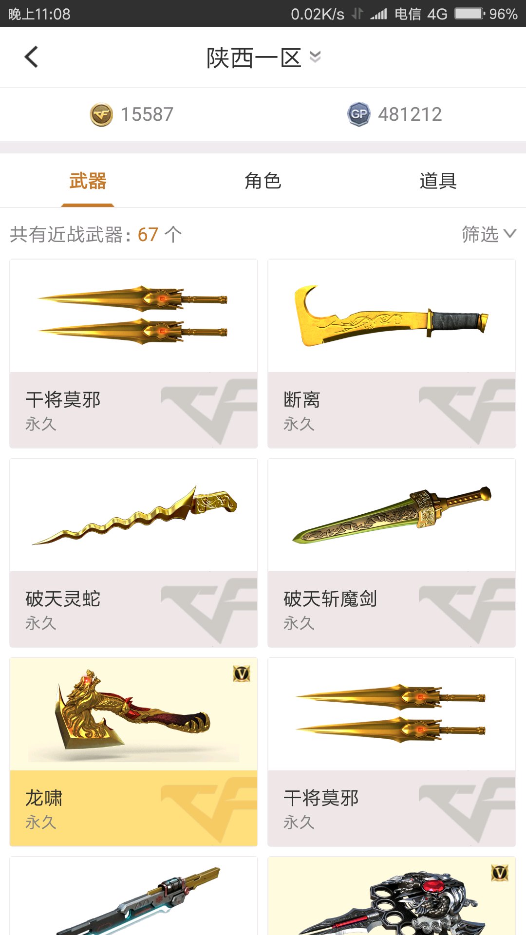 :67把刀..13个期限的,7个v刀,全部用来切枪