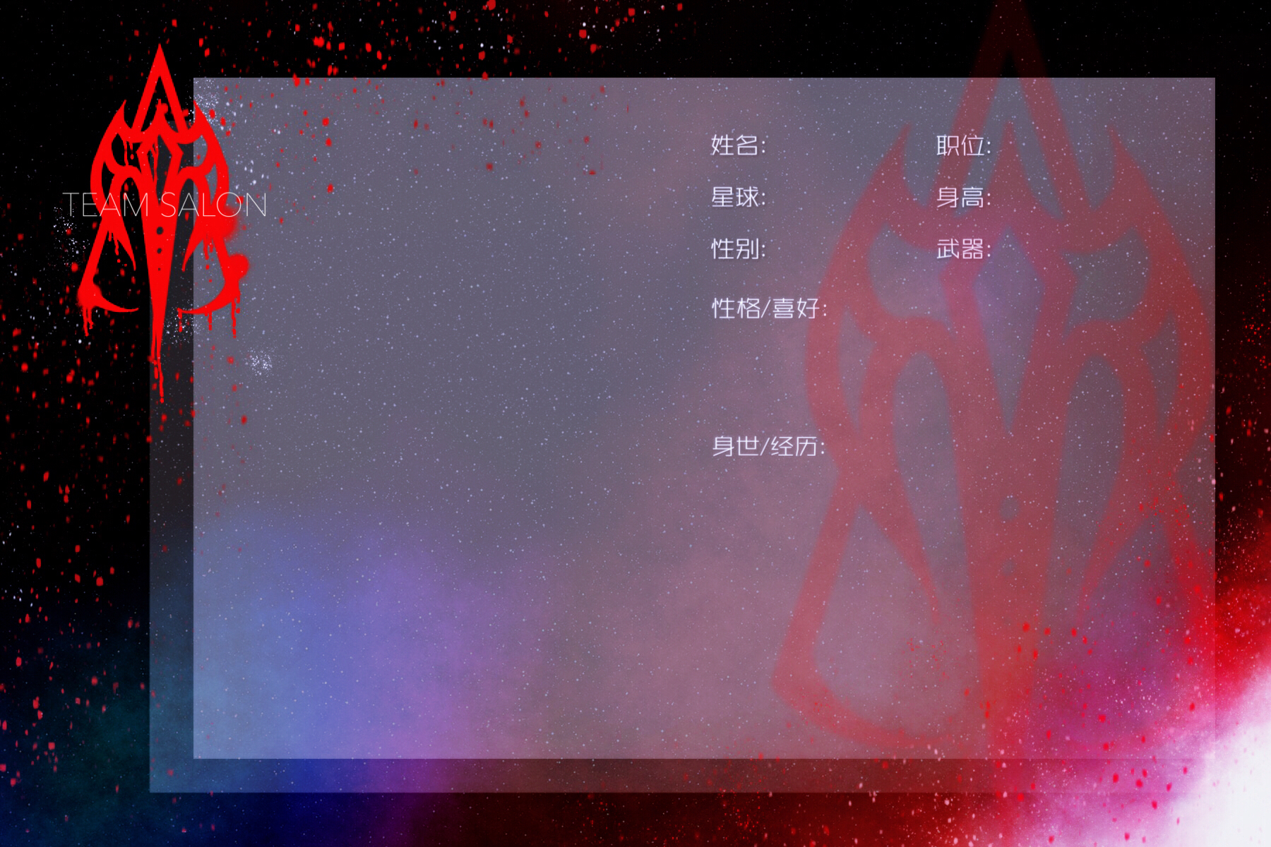 很抱歉由于我的突然脑洞加了AI智能,人设纸是一样的,星球那栏可以填上AI智能w