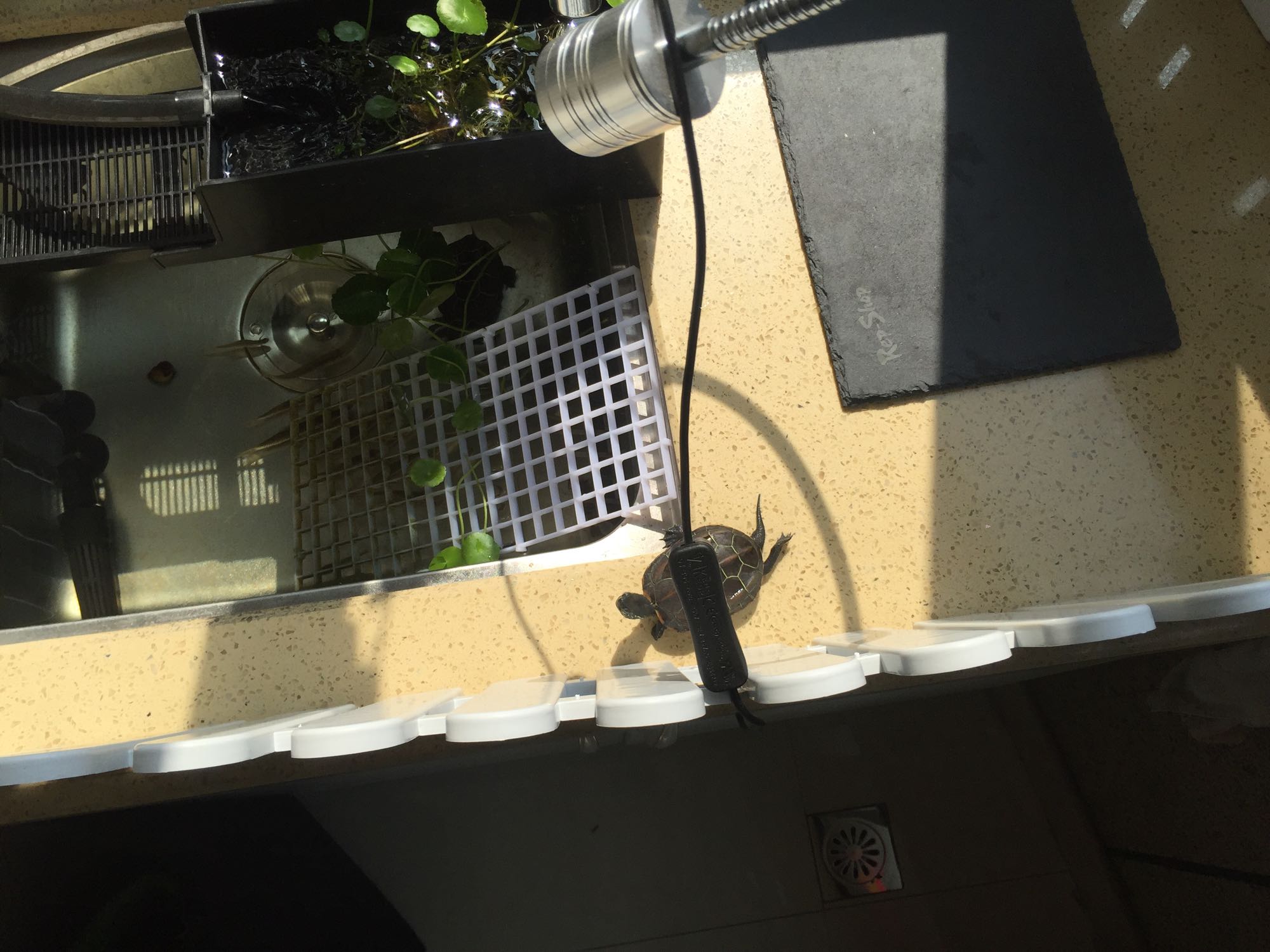 新环境,把鱼缸下了,乌龟感觉还是俯视的好看