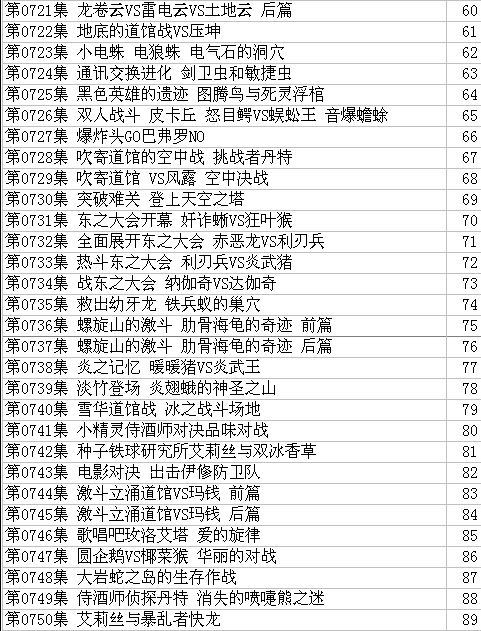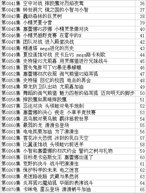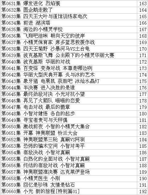 精灵宝可梦总集目录列表采用官方计算