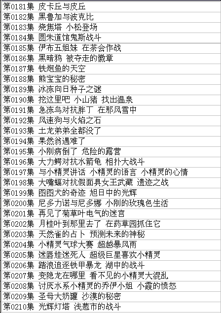 目录列表包含以下集数