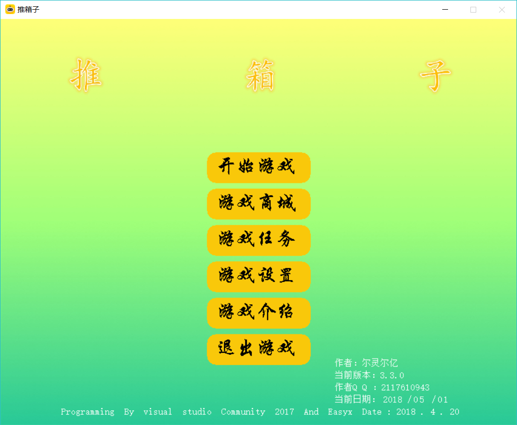 代码太长发不了。推箱子游戏