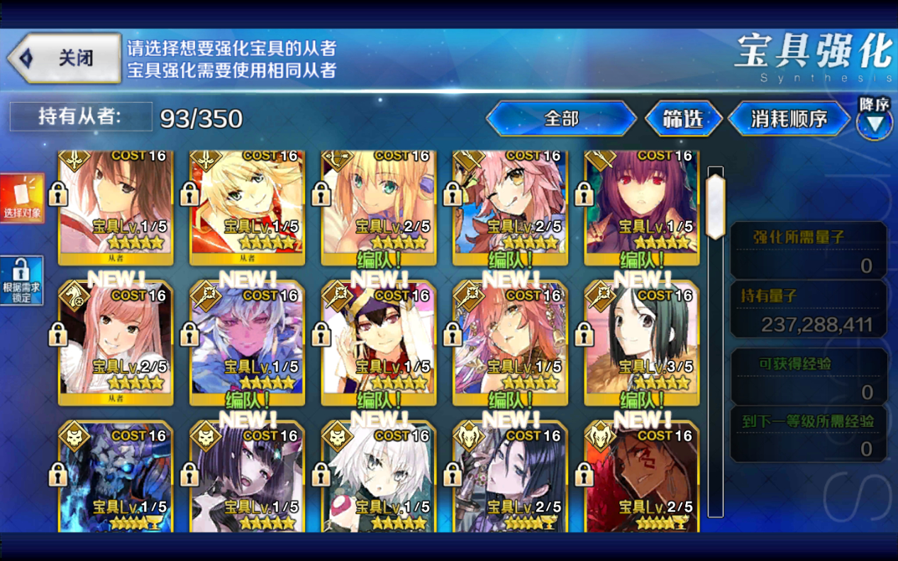 出个安卓中低练度号,算宝具24 SSR,主流都有