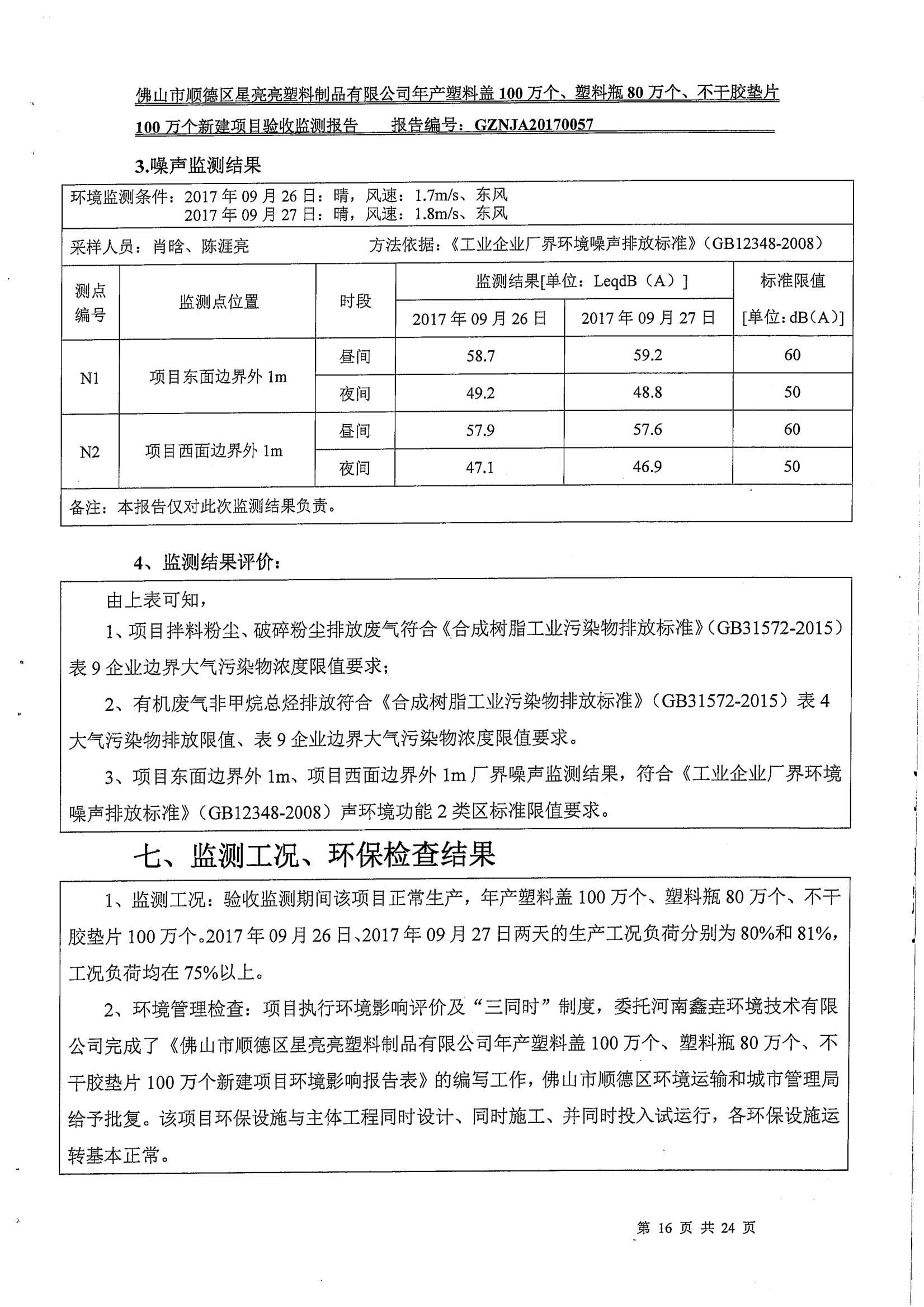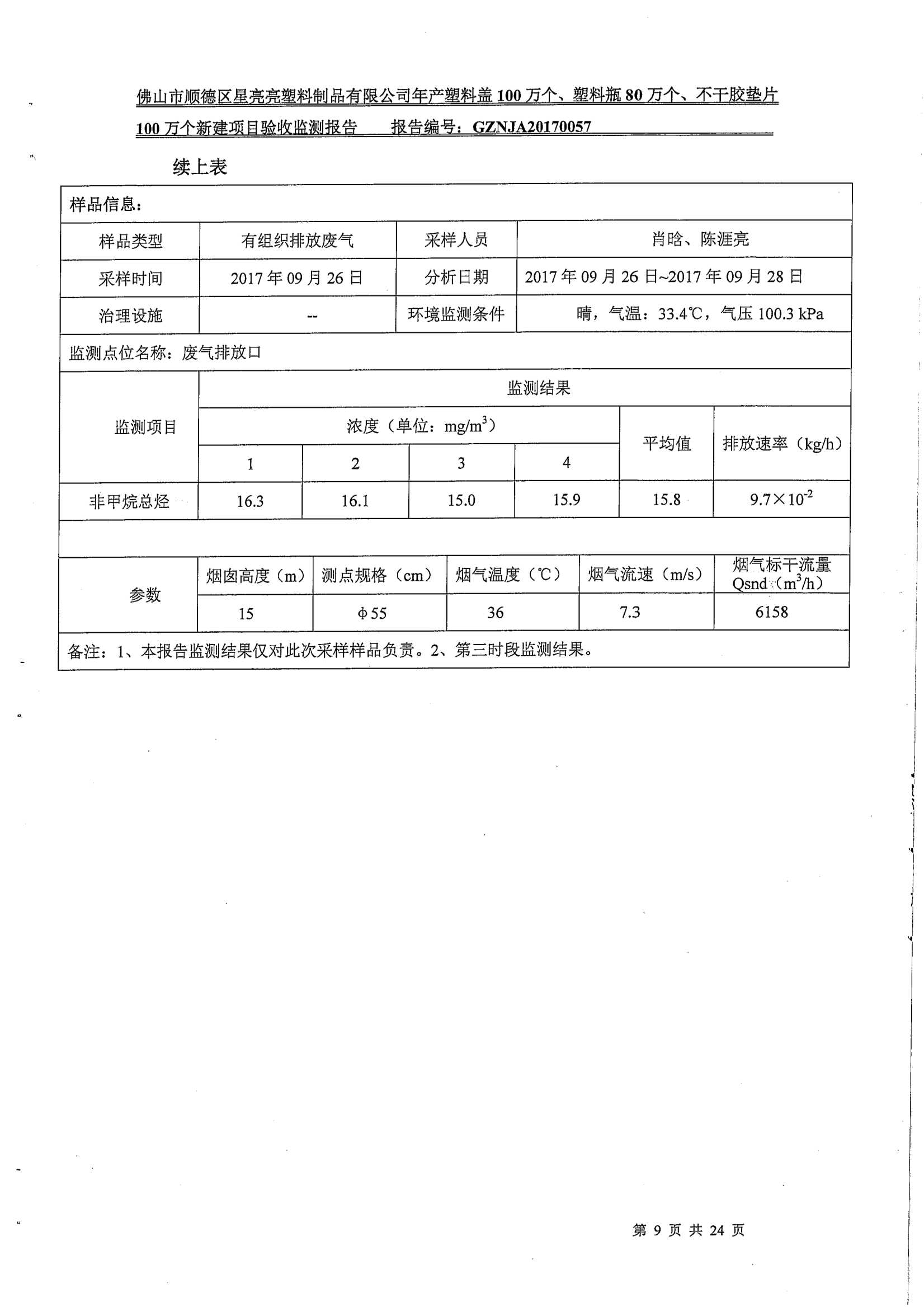 佛山市顺德区星亮亮塑料制品有限公司建设项目竣工环境保护验收监测报告