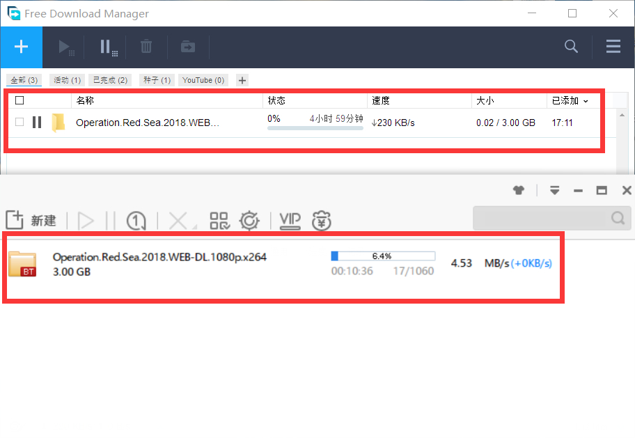 同样的种子,同一台电脑,FDM和迅雷下载速度如下图,差距太大了,是下的同一部电影,同一个种子,难道FDM需要设置,我不会设置造成的?但是我试了好多种子FDM基本上都是不会超过100K/s,有没有大神告诉下FDM如何设置。另外说下迅雷我用的极速版,没有开通会员