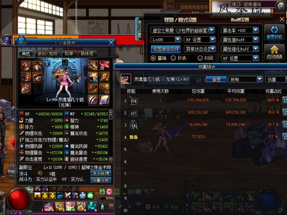 测试对象105 破招弗曼 ,日常3药。 18级加异界六换装 ,武器锻3,左面都是垃圾附魔,影响可以忽略。