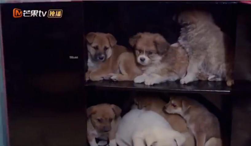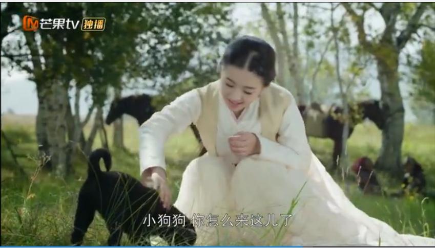 居然怕狗,还是小狗,还躲到颜婉姑娘的后面,哈哈!