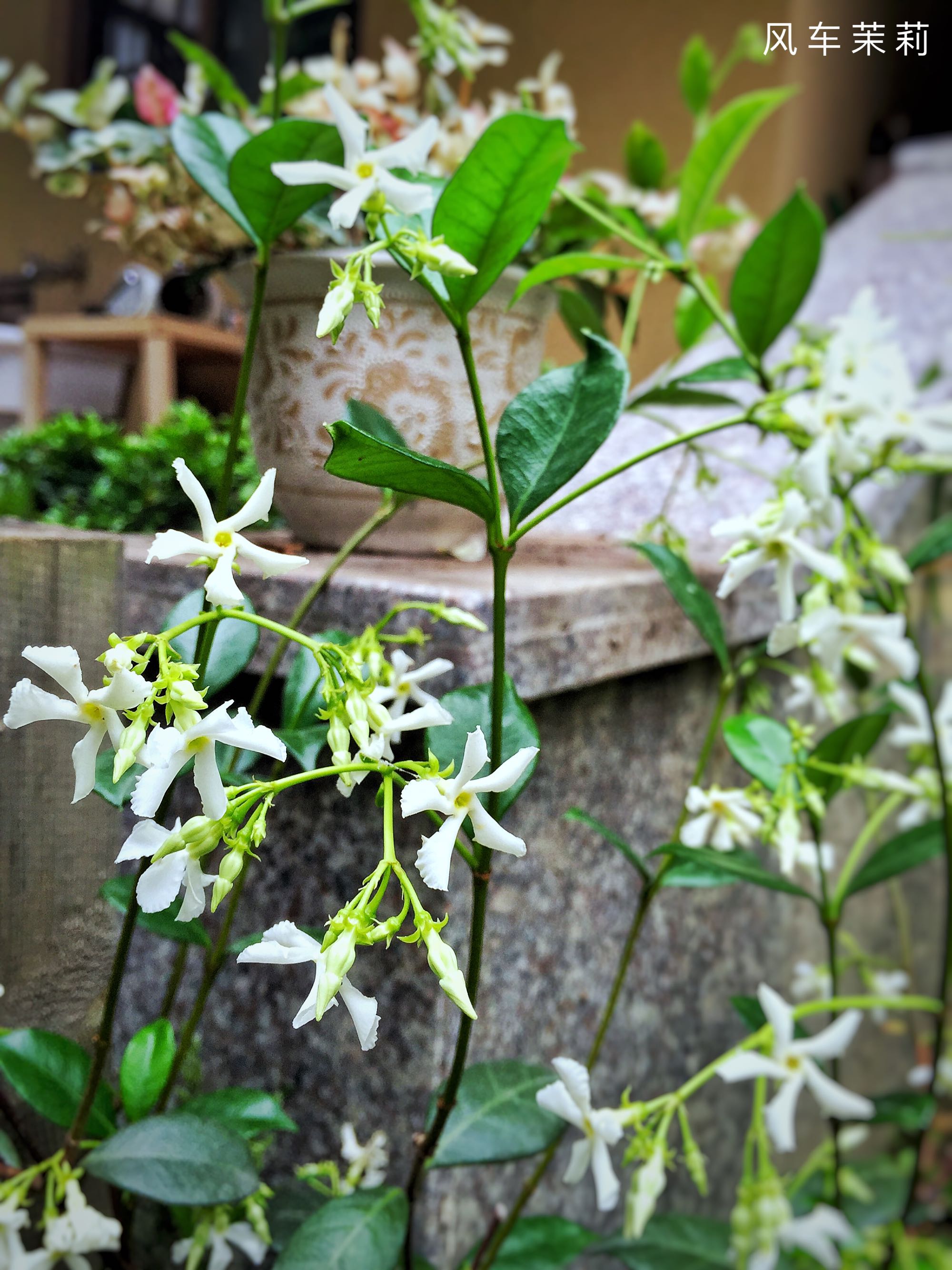 ,风车茉莉已经开出一片,都是春天种下的,真是好孩子!