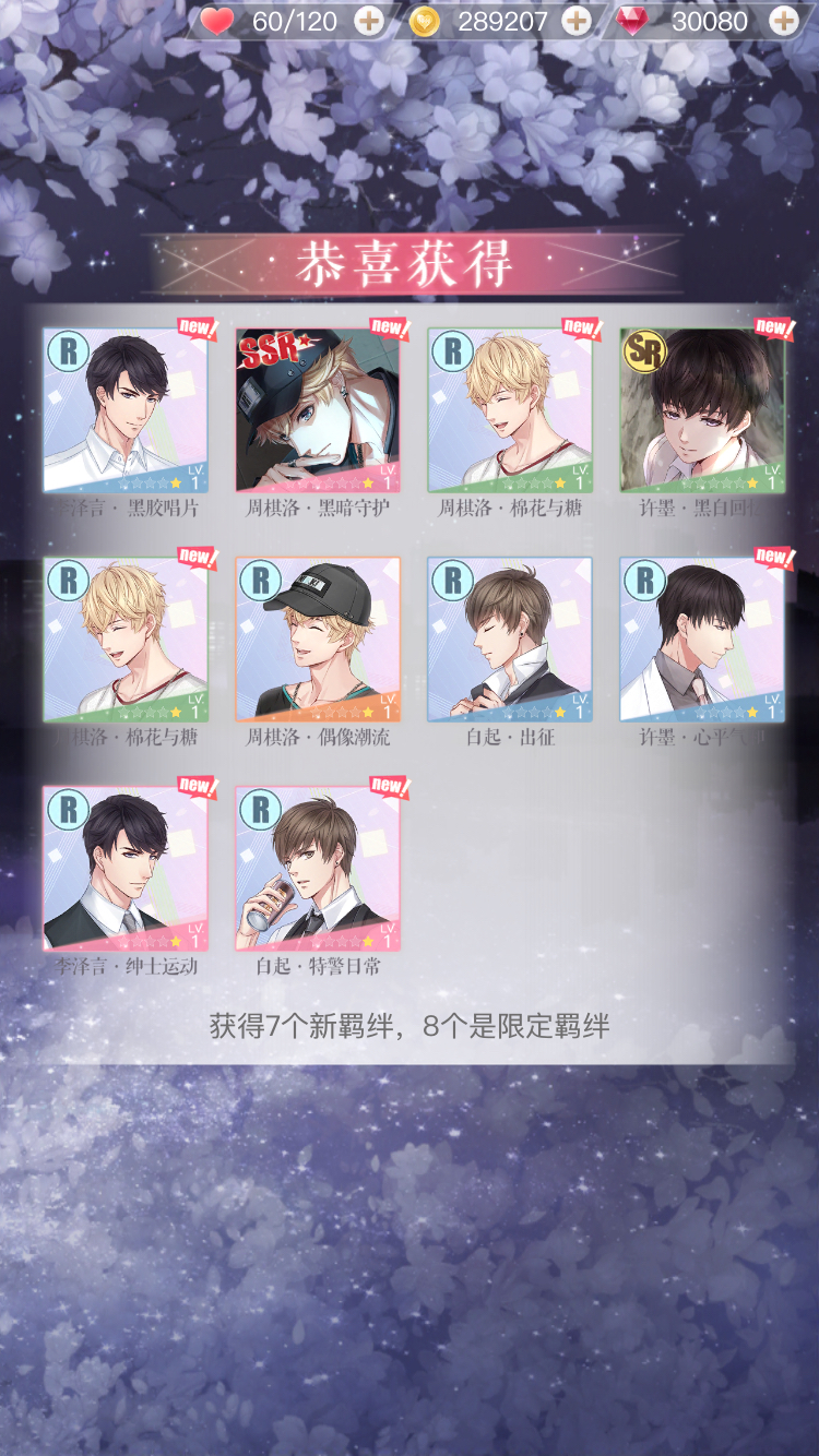 本来只打算10个10连抽的,看到要返钻,头脑一发热氪了648,凑了30000钻,加上23张时光券一共223抽,第二个十连黑暗守护,第五个十连誓不放手,第十五个十连出的缄默,第十九个十连出的遥远星球,最后一个第二十二个十连出的临界时刻,叠了四张誓不放手,两张黑暗守护,两张缄默,又换了莫奈舞曲,30000钻一共6个新的ssr,还有无数星沙,纠结要不要再氪个348看看能不能抽到风的身影