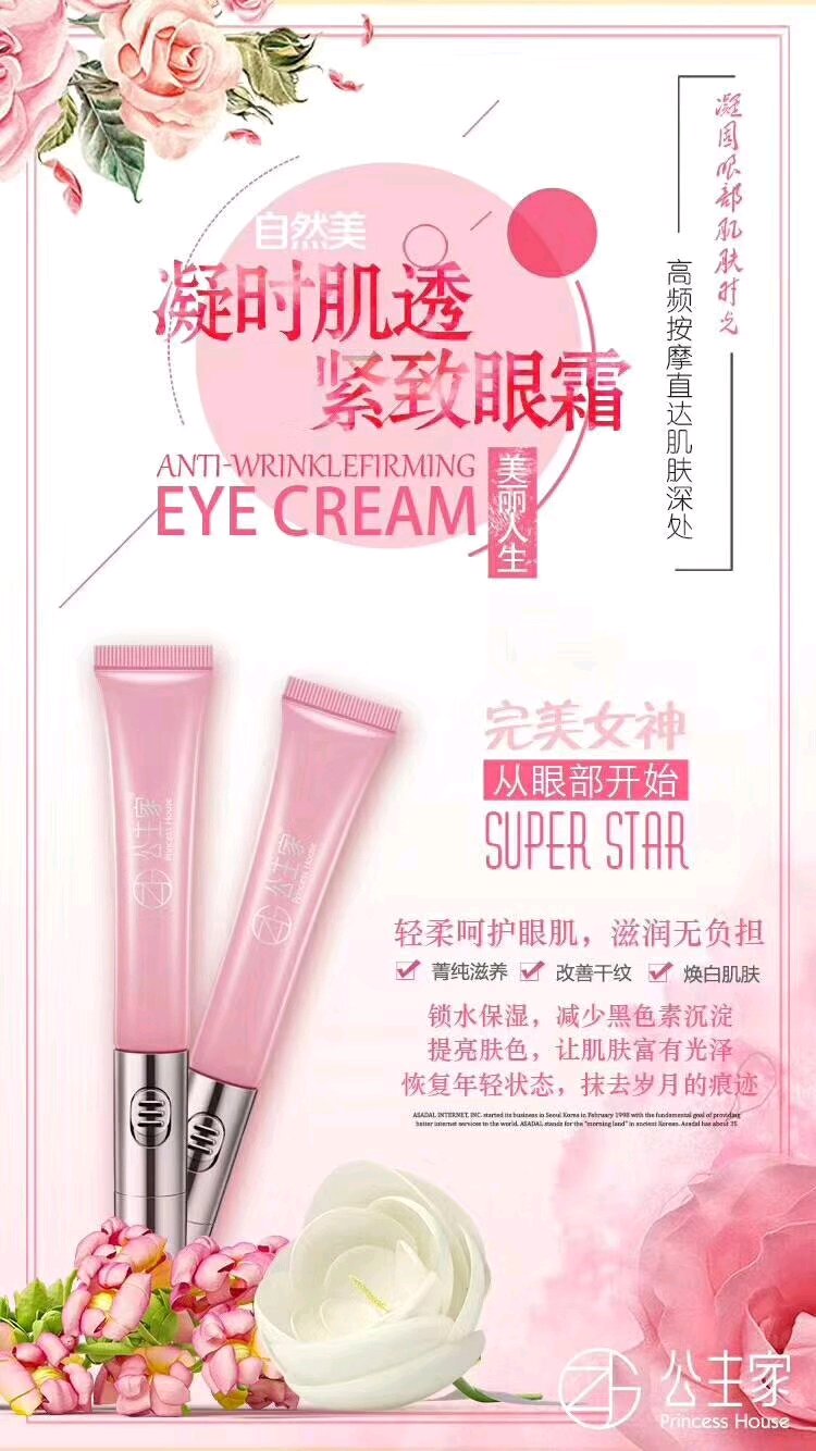 公主家眼霜,带电动按摩,可以迅速淡化细纹、黑眼圈和眼袋