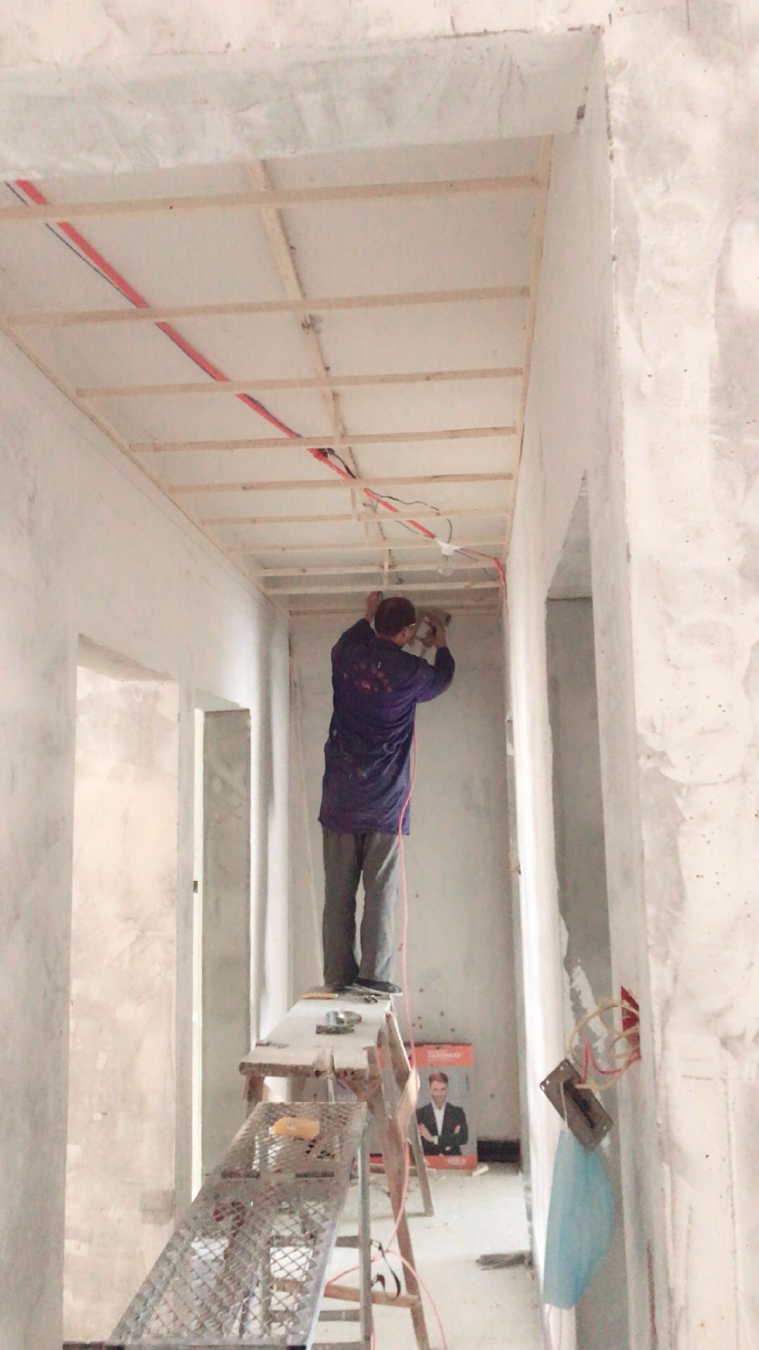 第六步25高强丝加固。 虽然麻烦不过这样做出来的活能有效的防止日后石膏板开裂