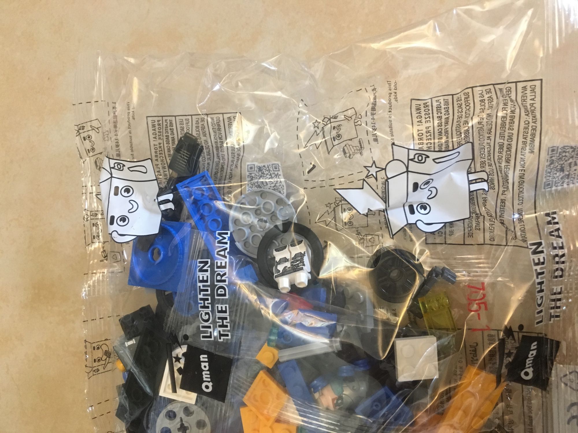 先来说说人仔,印刷还是很走心的,而且也是学习了lego的分装模式,不再像曾经那样分成一堆零件而是初步划分了身体和腿部