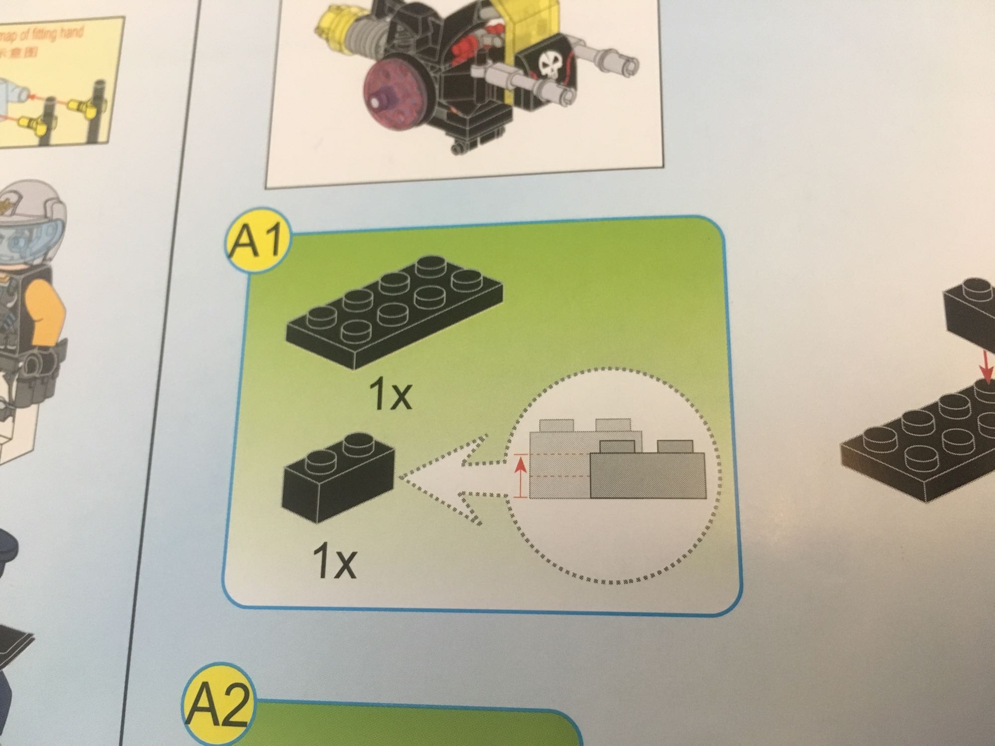 分包完毕正式开始测评,说明书的设定比较良心,一块只有两格高的1x2零件也被清晰的标注了出来,防止了拼装出错