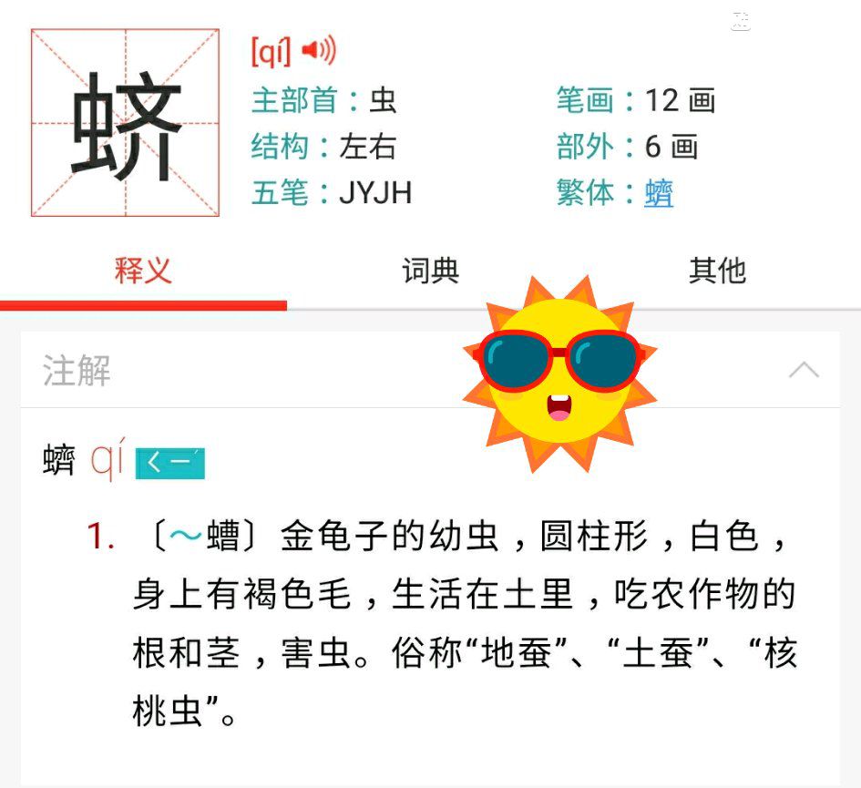 跻螬(应该是虫加齐,查不到这个字)是金龟子和蜣螂的幼虫,白色,身体呈圆柱形,是一种农业害虫。尤其蜣螂的幼虫,不是爬行,而是仰起身体,依靠背部的蠕动,缓慢得前行。蒲松龄在《青娥》一篇里说到“螬行而前”,这个比喻十分贴切形象。在悬崖绝壁上的横向缝隙里,不敢面部朝下,只能仰卧身体,依靠脊背的蠕动,一点一点的向前移动。这个比喻多么贴切形象 啊!