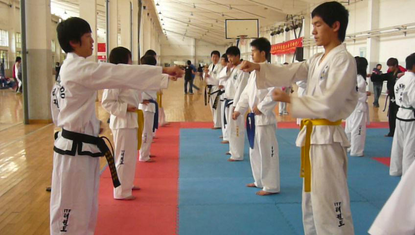 2009年4月24日 北京天地国际跆拳道馆和北京科技职业学院共同组织举办了一次以“在交流中进步”为主题的ITF学习交流会。