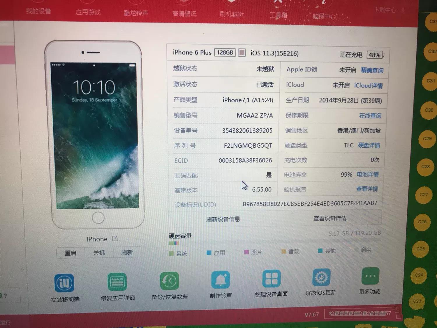 收到网友一台iPhone6Plus,问题描述是经常重启,而且充不进电,