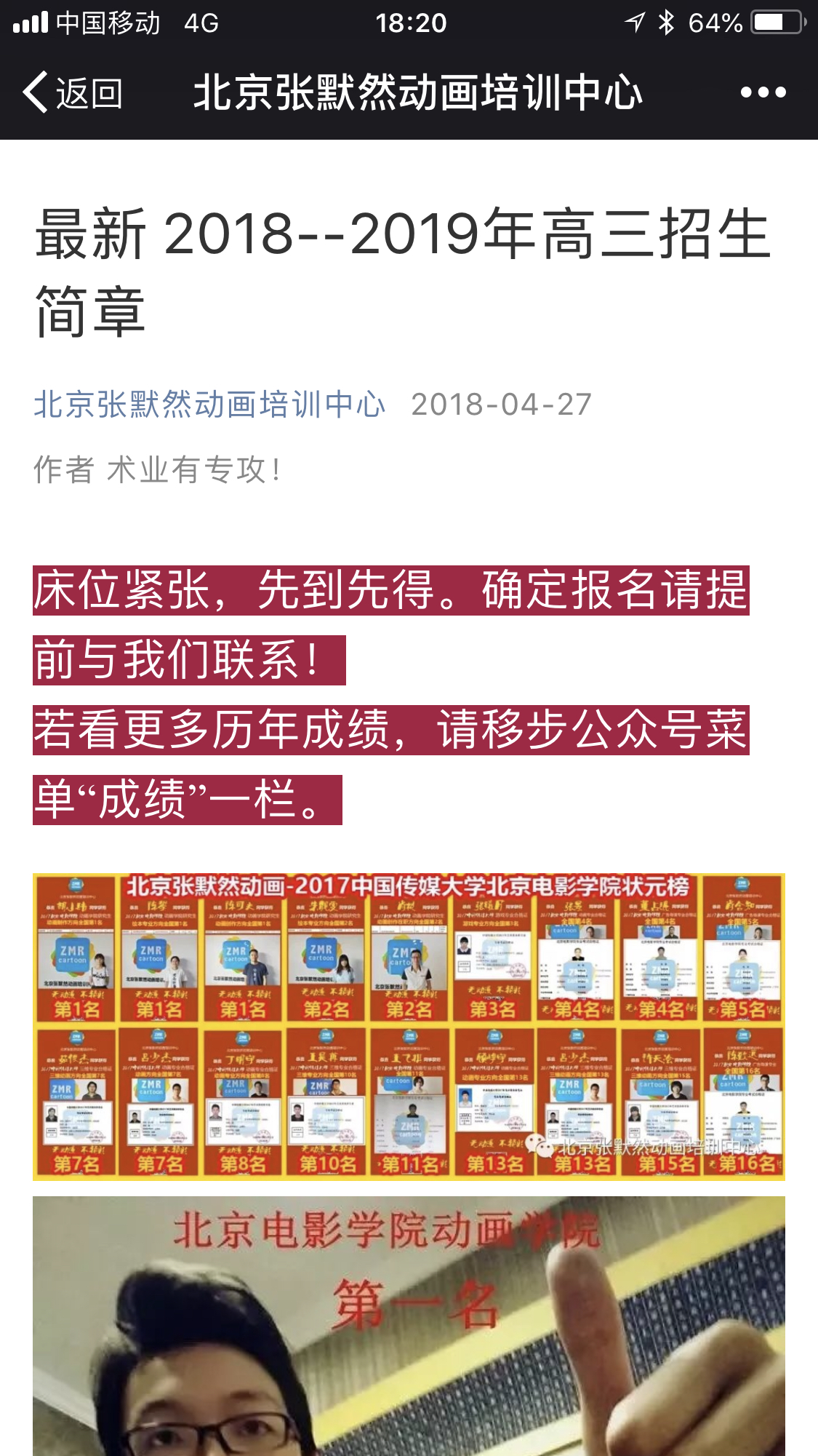 2018张默然动画考本招生简章