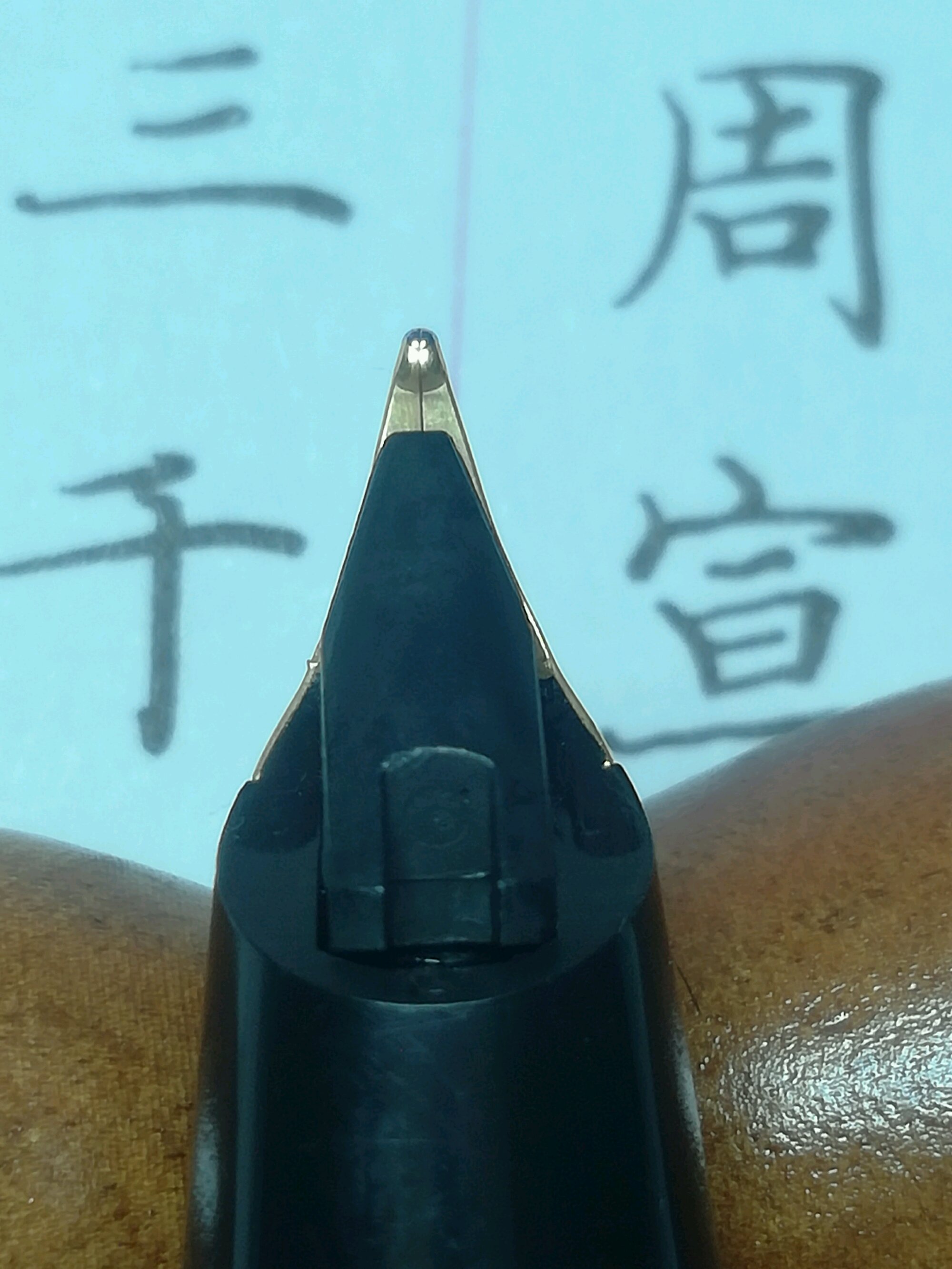 銥粒对比。另外一支钢笔是永生2002。据我观察,永生大包尖(233)也都是忠实于刚到手的犀飞利銥粒的形状和打磨。