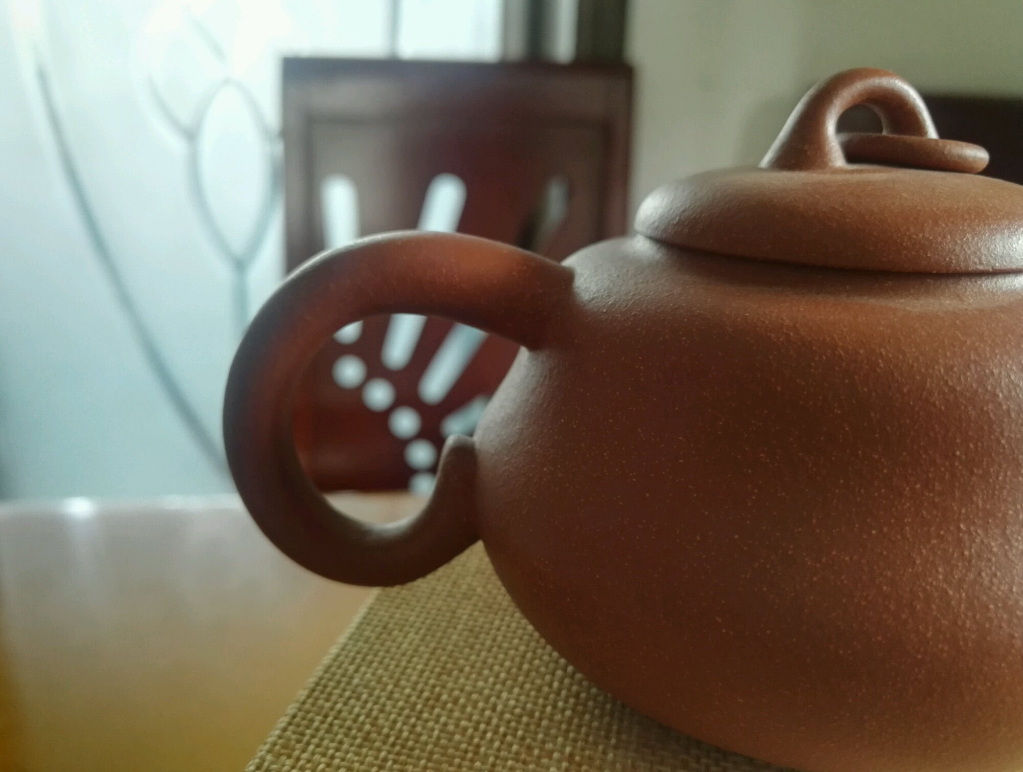 闲置壶出,原矿降破泥,容量280cc,民间实力派艺人作品。壶已经养了一年多。