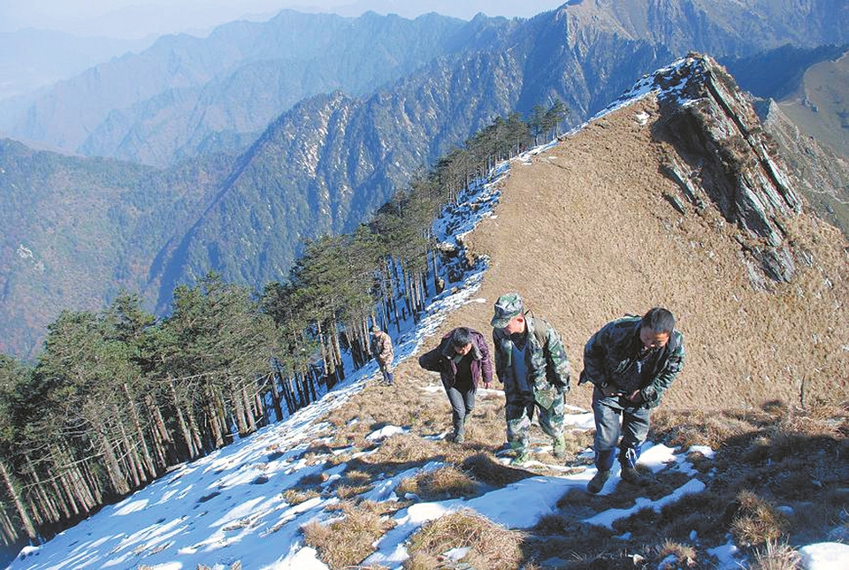 被称为“熊猫爱情走廊”的鞍子河自然保护区,今冬以来,已下了很多场雪。积雪凝冰,行走困难。而“守护人”每天都要上山巡护,最近的往返也要六七个小时。不仅如此,每次上山,都会别上一把柴刀,因为“巡护的地方都没有路,走不通时就现场开路”。