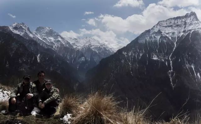 弯刀、水壶、沉重的行囊,三名队员行走在巡护路上。
