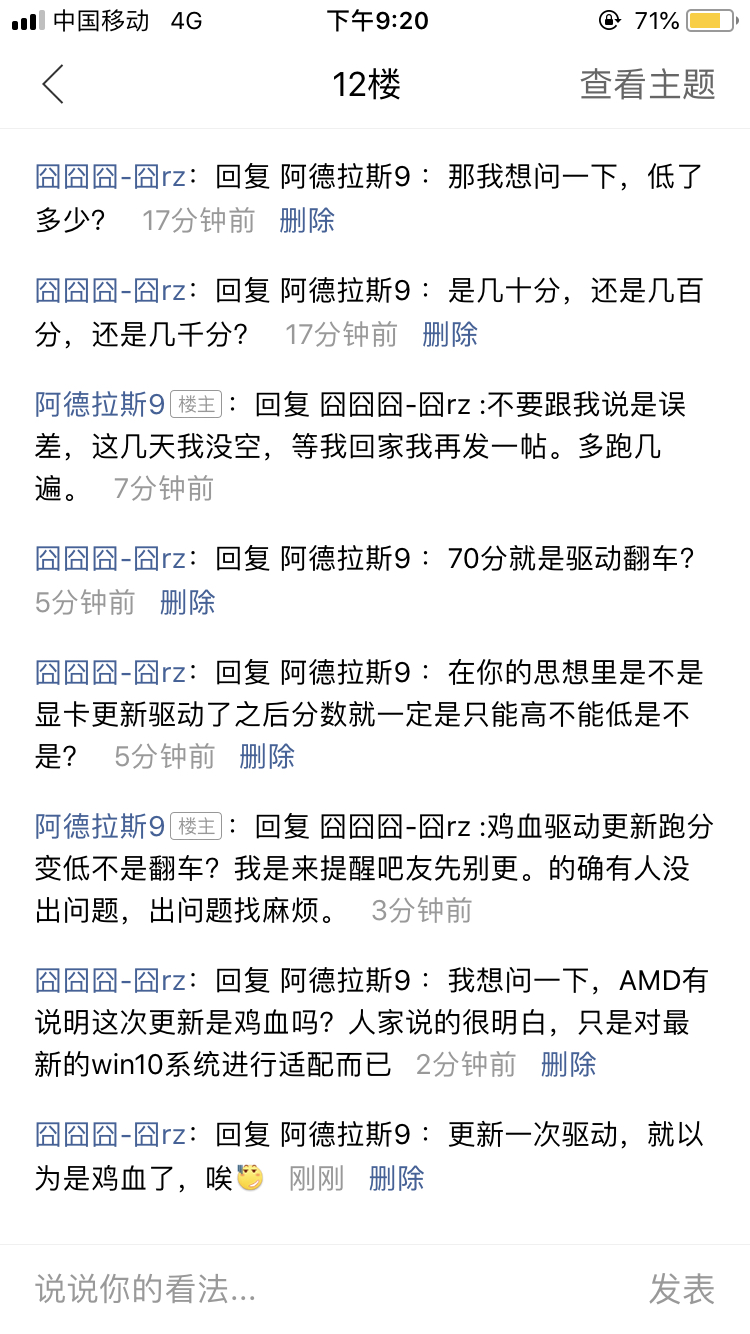 跑分低了70分 就表示驱动翻车了,知道自己说漏嘴了,还把那一段给删了
