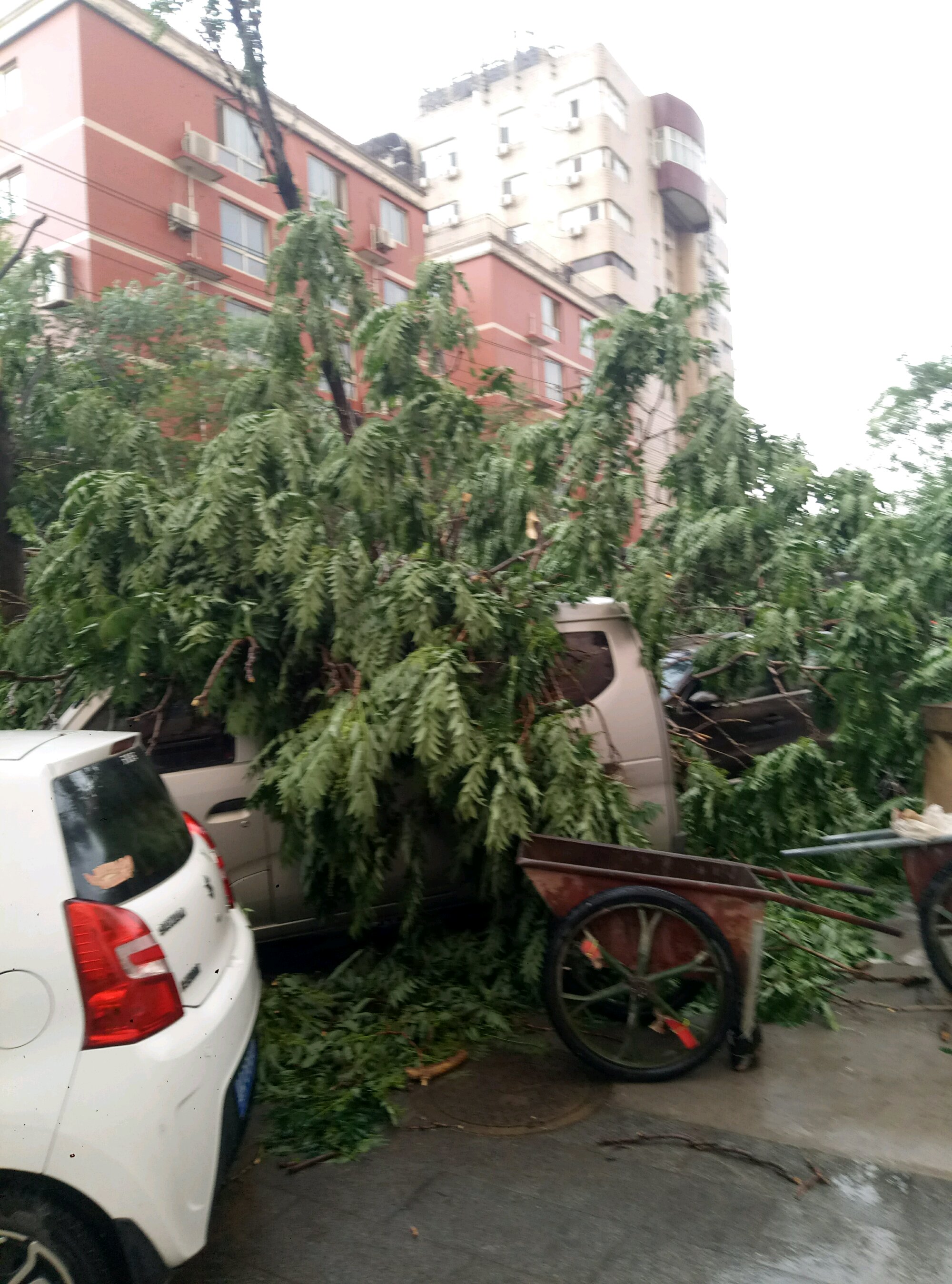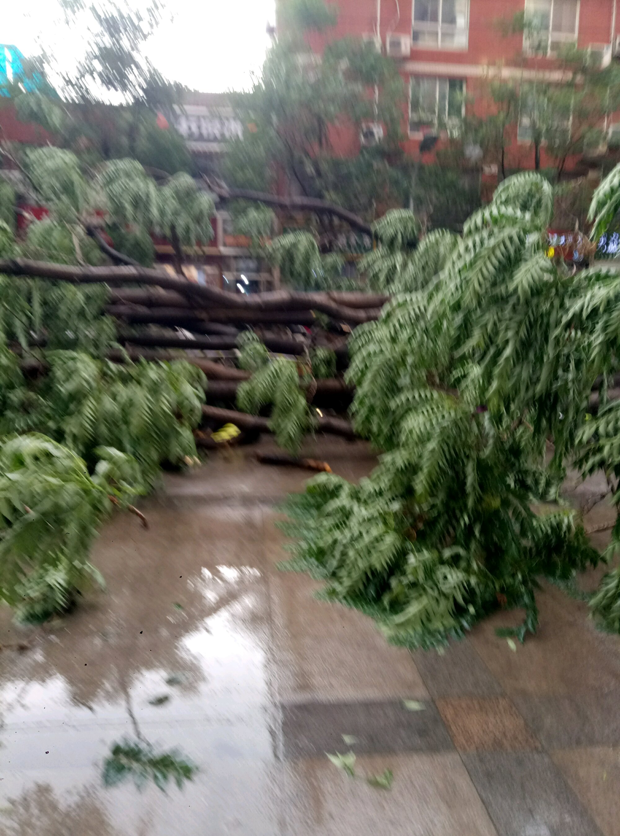 小区旁边的大树倒了