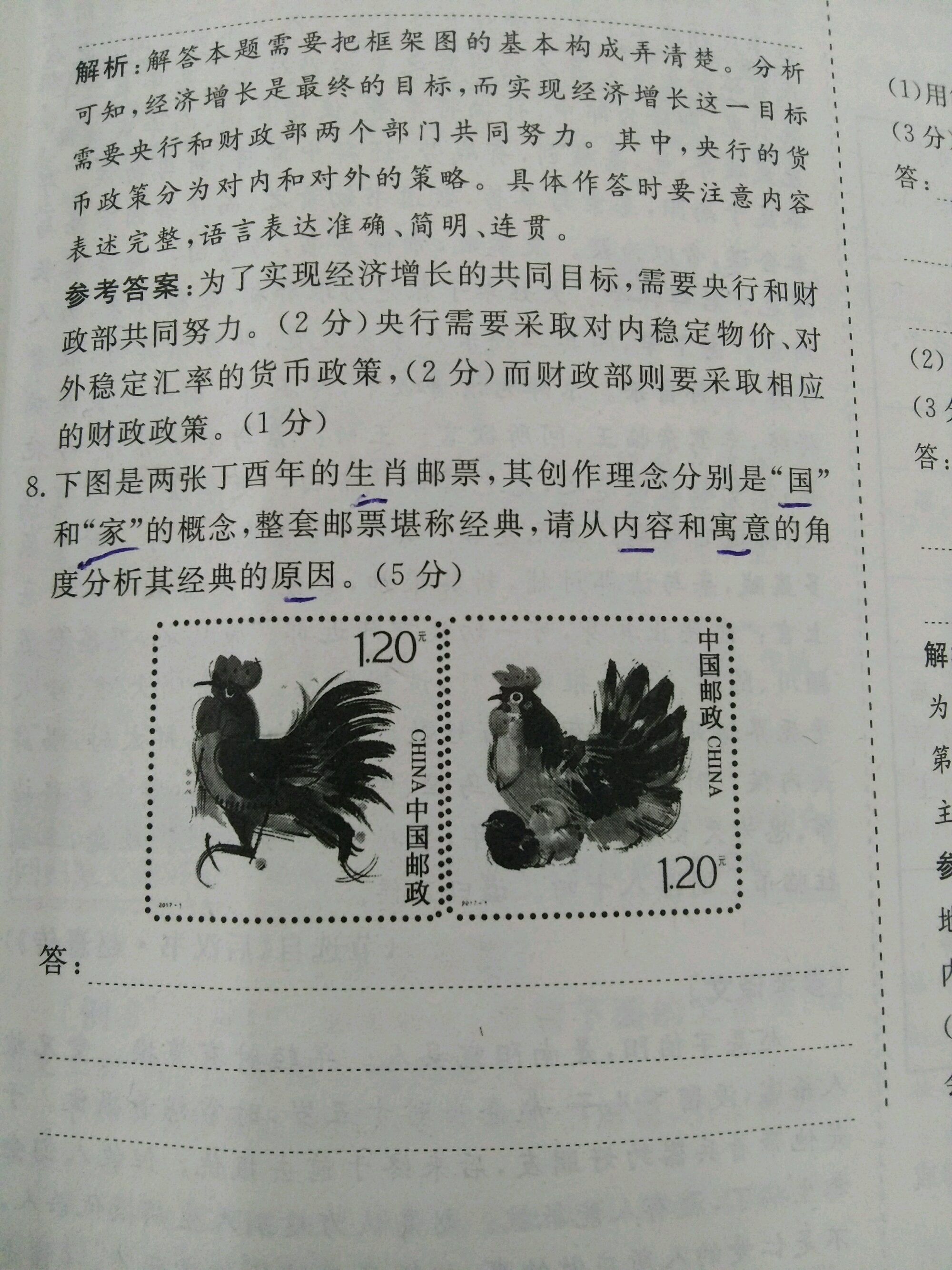 本题五分,要求从内容和寓意做出回答,二三开,先描述两幅画基本要素,再从家国引申其含义,不说拿满分三四分起码到手