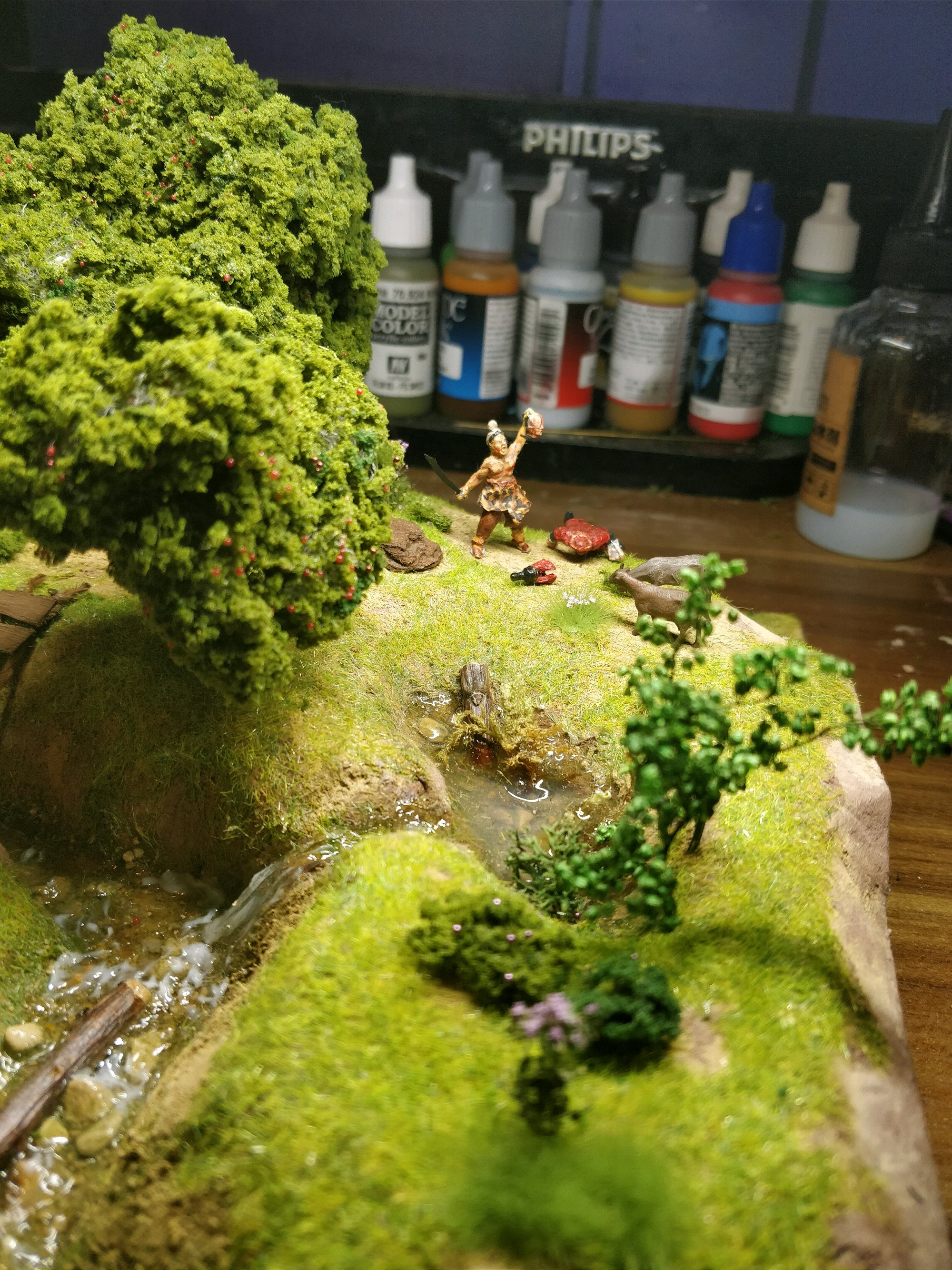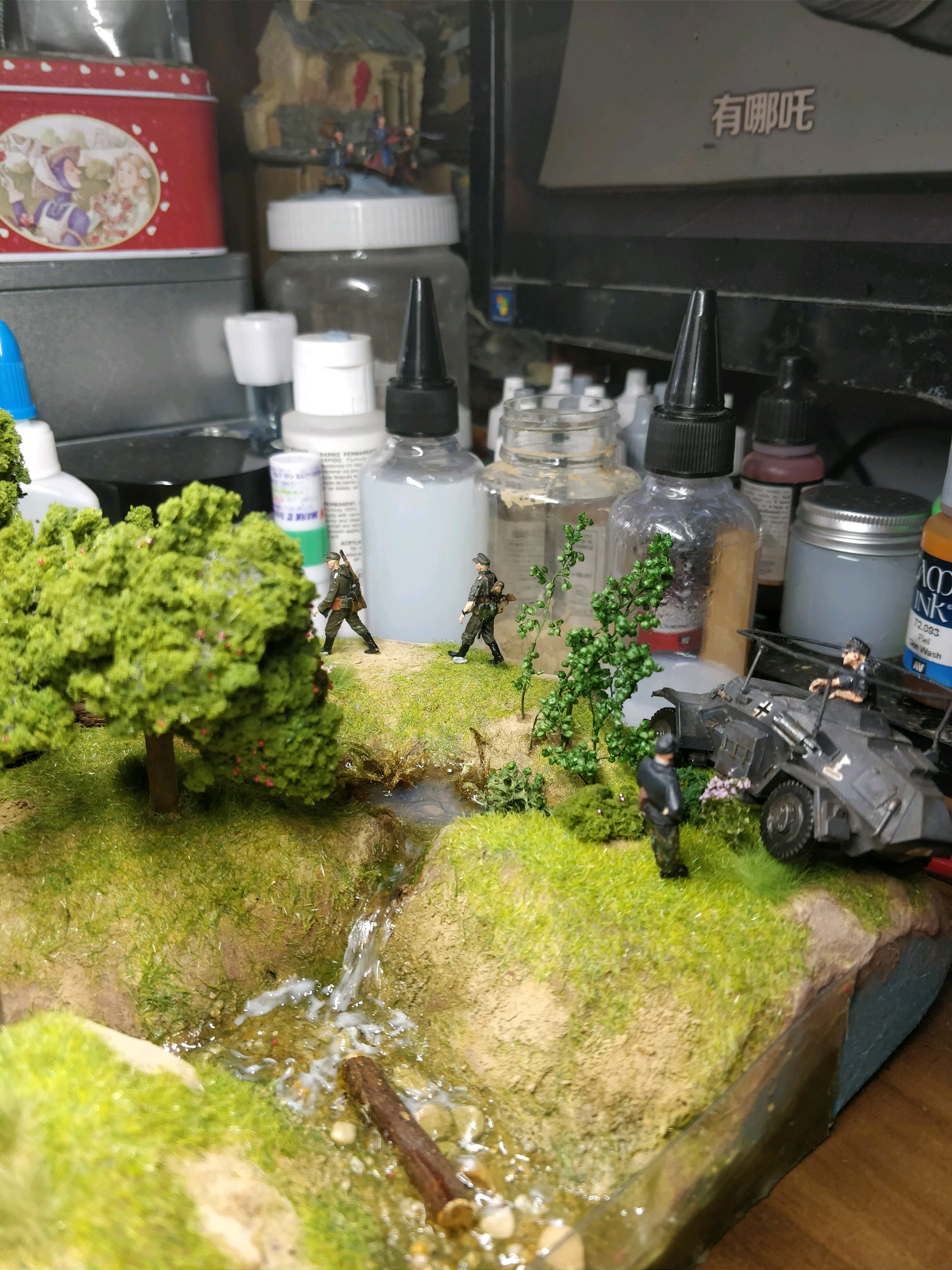 接下来是模型地台,泡沫,地形土,上胶,种草,水景。
