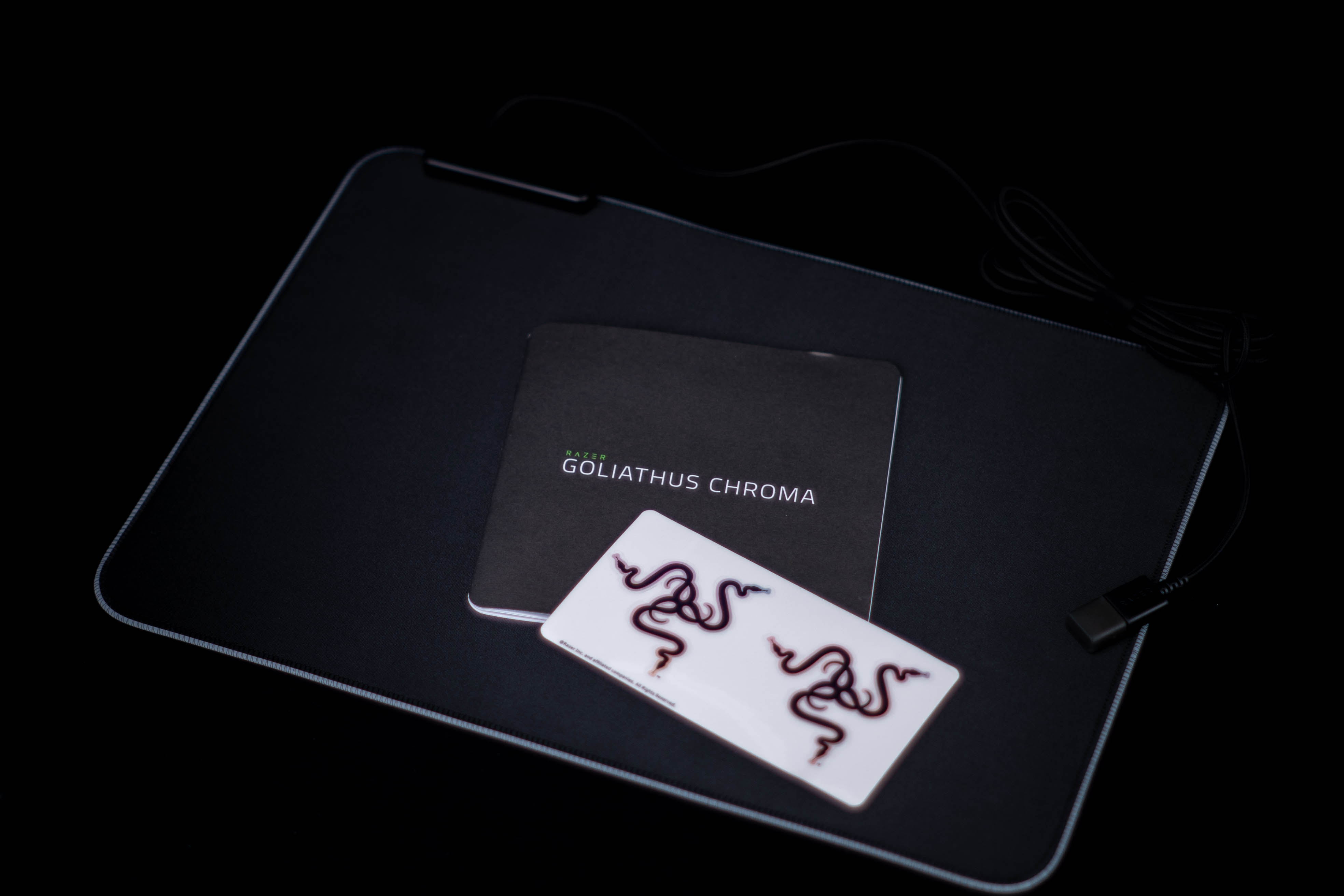 【Razer雷蛇Goliathus重装甲虫幻彩版】无需驱动,通电即亮,无驱动的情况下默认为光谱循环的灯效,灯光均匀亮度也比较高,不过边缘的包边织线有点煞风景。