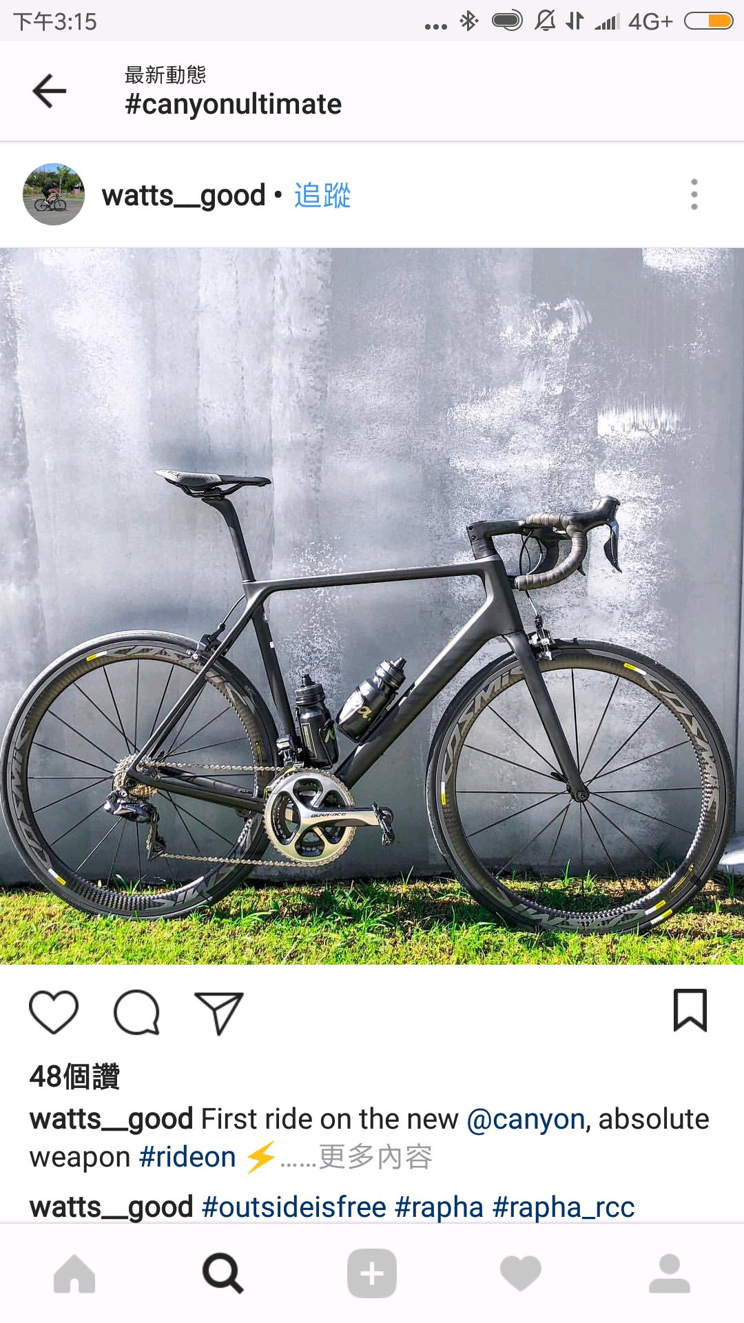 最后就是黑色咯, 很霸气,骑行服也百搭,唯一叫我纠结的只有它的轮组,官网现在配的轮组都太高……