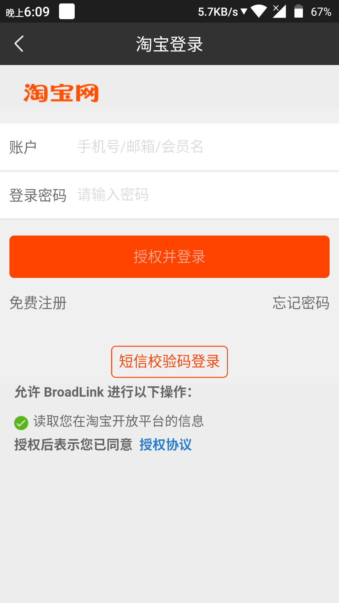如果不想淘宝授权,自己去用手机注册登录,没人拦你